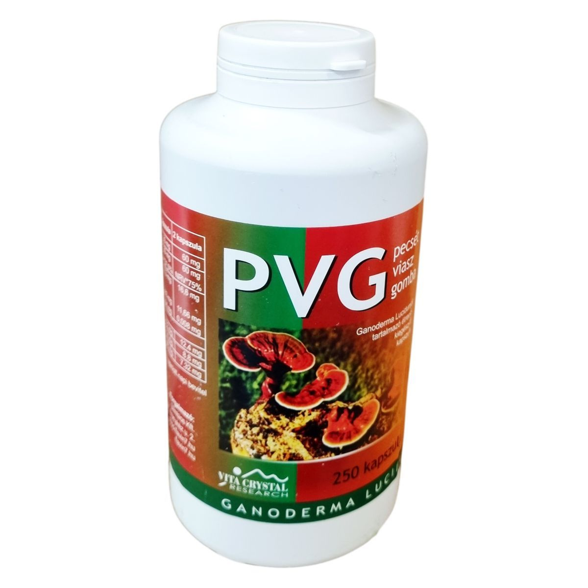 A PVG kapszula a Ganoderma Lucidum (pecsétviaszgomba) erejét ötvözi a Flavin7 komplex különleges bioflavonoidjaival. A készítmény gazdag poliszacharidokban, polifenolokban és aminosavakban. A speciális HPMC kapszulahéj vegetáriánusok számára is megfelelő választás lehet. A termék nettó tömege: 155 g (250 x 620 mg).