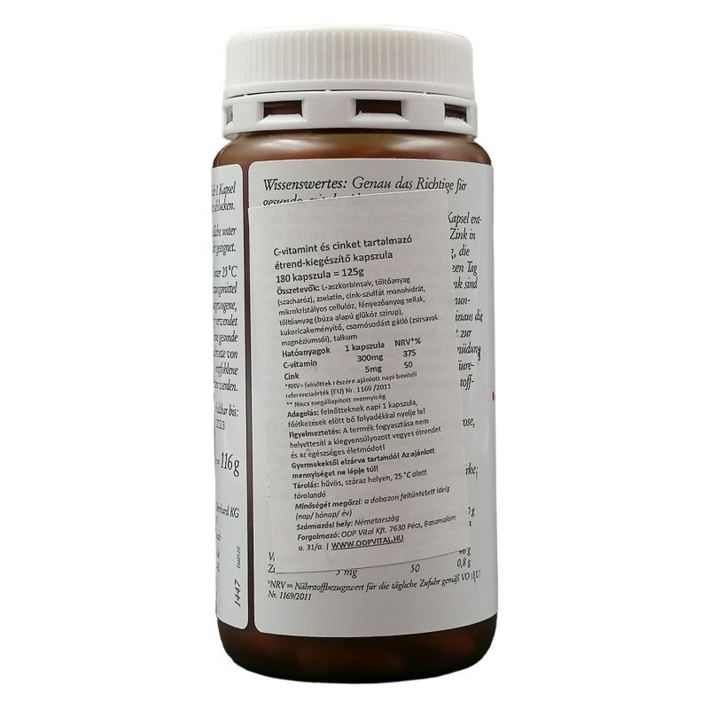 C-vitamin + cink nyújtott felszívódással. A C vitamin mellet a cink is nagyon fontos a szervezet ellenálló képességének növeléséhez.