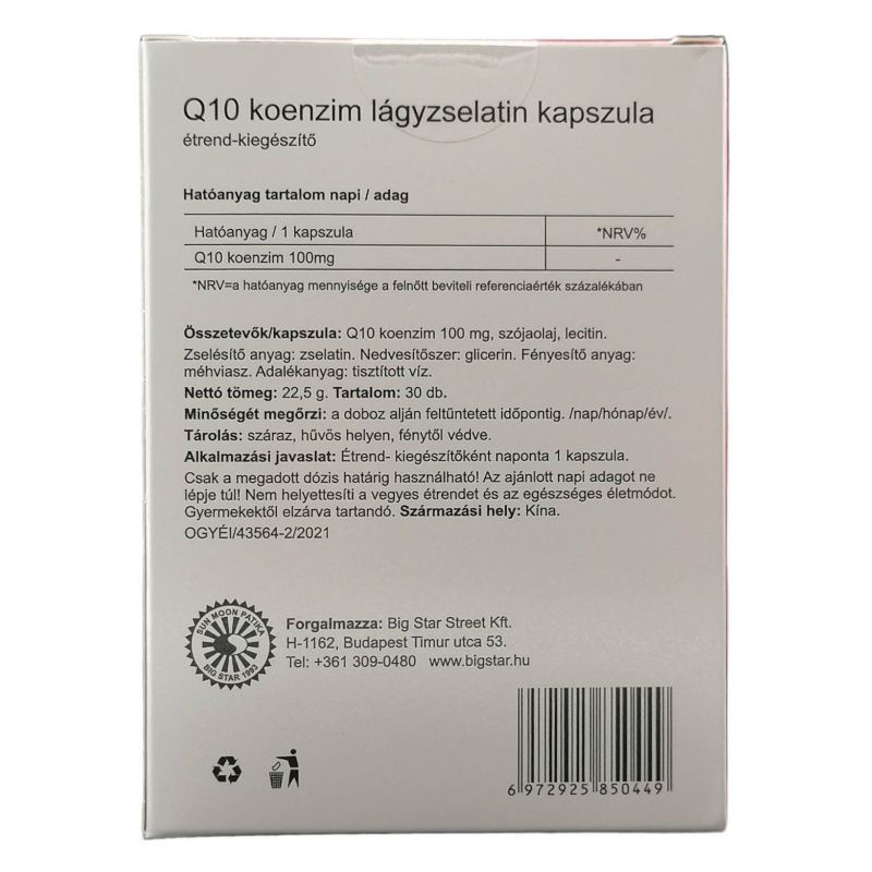 Hatóanyag tartalma: 100 mg q10 KOENZIM, szójaolaj, lecitin.