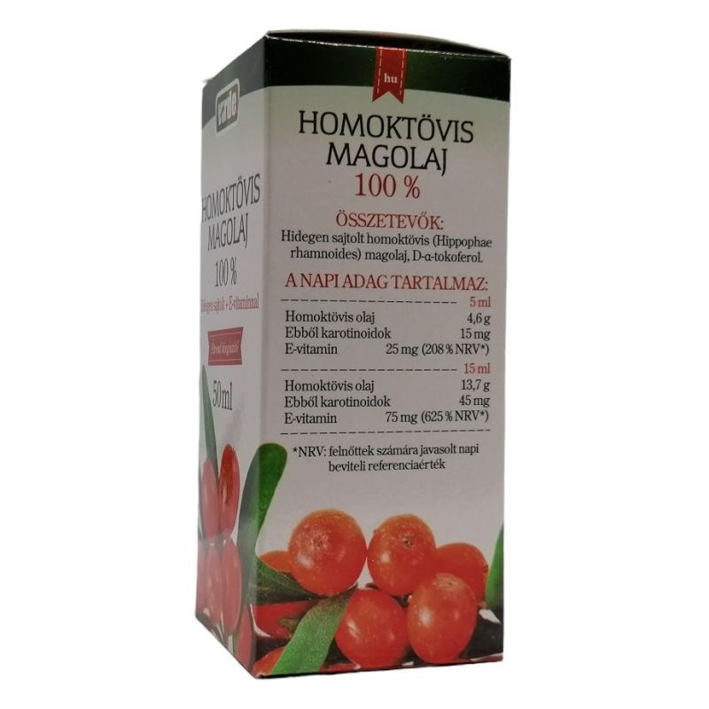 Összetevők: hidegen sajtolt homoktövis (Hippophae rhamnoides) magolaj, D-α-tokoferol. Adagolás: 1 teáskanál (5 ml) olaj, naponta 1-3 alkalommal.
