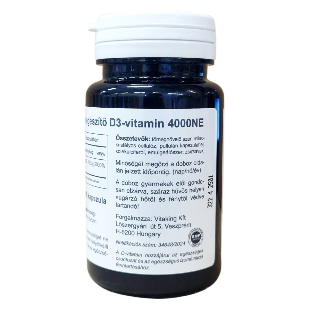A Vitaking legújabb D-vitamin készítménye a 4000NE hatóanyag-tartalmú D3-vitamin kapszula.