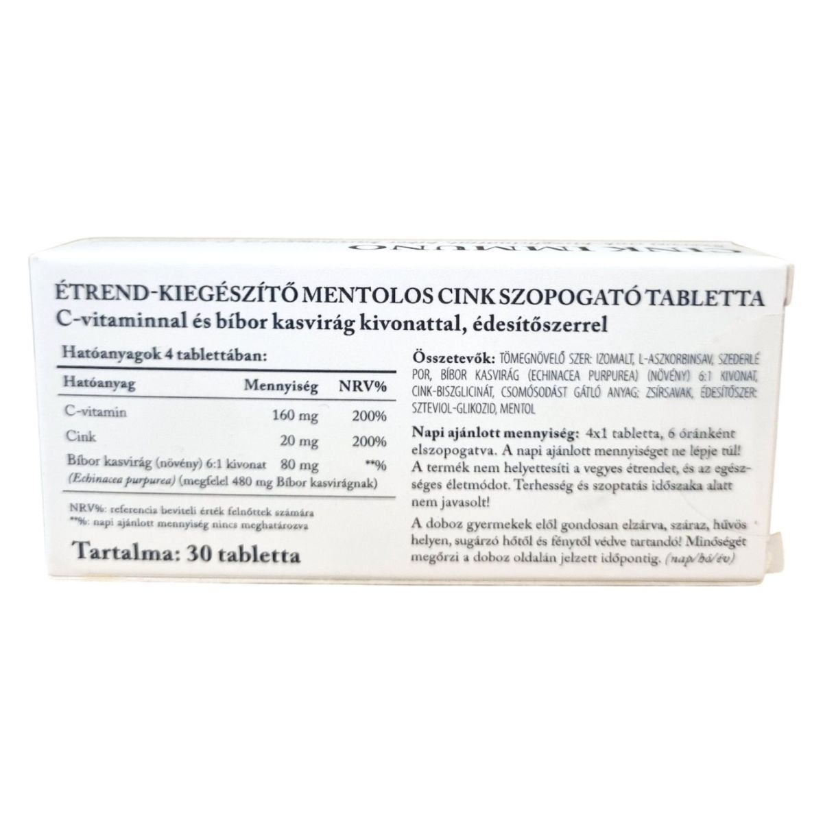 A CINK IMMUNO szopogató tabletta szerves cink-biszglicináttal, bíbor kasvirággal és C-vitaminnal készült. Hozzájárulhat az immunrendszer normál működéséhez és a szervezet védekező rendszerének megfelelő működéséhez.