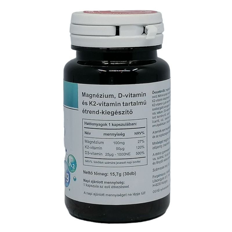 Kiváló minőségű komplex készítmény, ami nagy mennyiségben tartalmaz Magnézium-citrátot, D3 és K2 vitamint.
