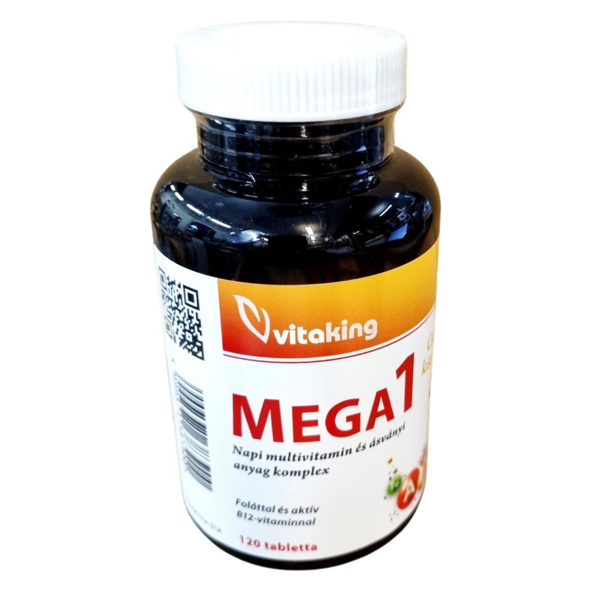 A Vitaking MEGA1 multivitamin és ásványi anyag komplex egy étrend-kiegészítő, amely különböző vitaminokat és ásványi anyagokat tartalmaz. A termék fóliával és aktív B12-vitaminnal van ellátva, amely metilkobalamin formában található meg. A termék célja, hogy támogassa a szervezet egészségét és hozzájáruljon a napi vitamin- és ásványi anyag szükséglet kielégítéséhez. Az összetevők között megtalálhatóak különböző emulgeálószerek, stabilizátorok és csomósodást gátló anyagok is.