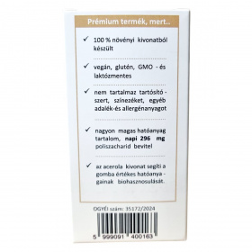 Mandulagomba és acerola kivonatot tartalmazó, növényi alapú étrend-kiegészítő kapszula, magas poliszacharid tartalommal.