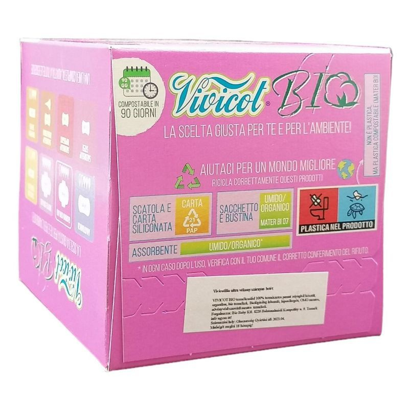 A Vivicot Bio egészségügyi betétek voltak Olaszországban az első biológiailag teljesen lebomló termékek, vagyis azokat úgy tervezték, hogy komposztálhatók legyenek. amelyet az Olasz Komposztálási Társaság (CIC) által kiadott tanúsítvány igazol. Olyan etikus termék, amely hozzájárul a hulladékok mennyiségének csökkentéséhez és a fenntartható fejlődés előmozdításához.