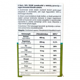 A készítményben található tengeri algát Izland vizeiből, az Atlanti-óceánból gyűjtik, feldolgozása az Egyesült Királyságban történik. A termék a vegán étrendet követők igényei alapján összeállított ásványianyag- és nyomelem-komplexet tartalmaz. A BioCo 100% vegán termékcsalád a vegán életmódot követők számára nyújt megbízható minőséget. Új, színezékmentes, nyeléskönnyítő bevonattal rendelkezik, jól látható hatóanyagszemcsékkel.
