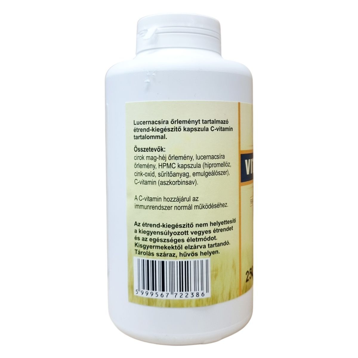 A termék lucernacsíra őrleményt és C-vitamint tartalmaz kapszula formájában, kiszerelése 250 darab, összesen 155 gramm. A C-vitamin hozzájárulhat az immunrendszer normál működéséhez, míg a lucernacsíra őrlemény az étrend kiegészítéseként szolgál. Az ajánlott napi adag három kapszula, amelyben 600 mg lucernacsíra őrlemény és 180 mg C-vitamin található meg. Az összetevők között szerepel továbbá cirok mag-héj őrlemény és a kapszula alkotórészei, mint a hipromellóz és cink-oxid. A termék fogyasztása nem helyettesíti a változatos, kiegyensúlyozott étrendet és az egészséges életmódot. Kisgyermekektől elzárva kell tartani, valamint a kapszulát száraz és hűvös helyen kell tárolni.