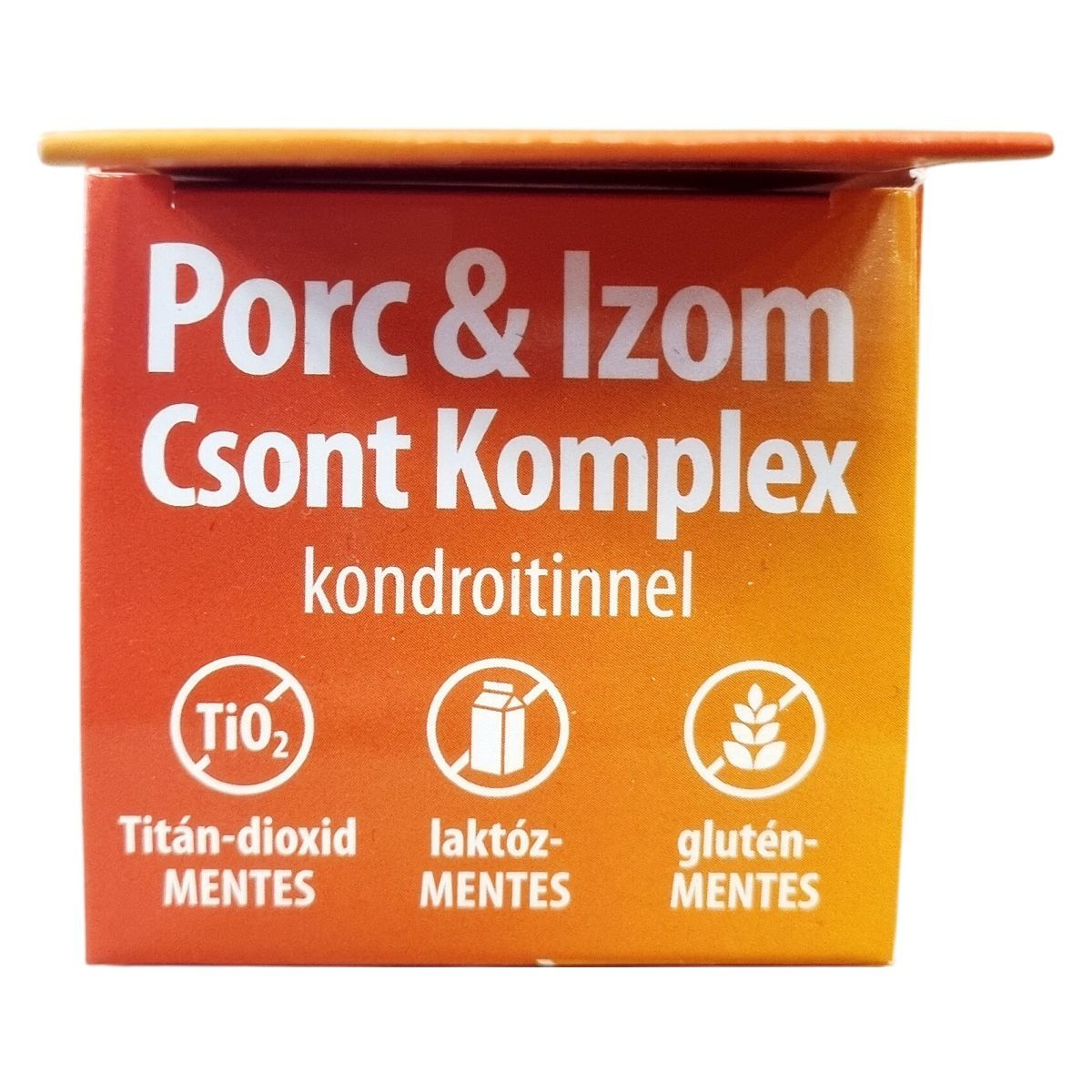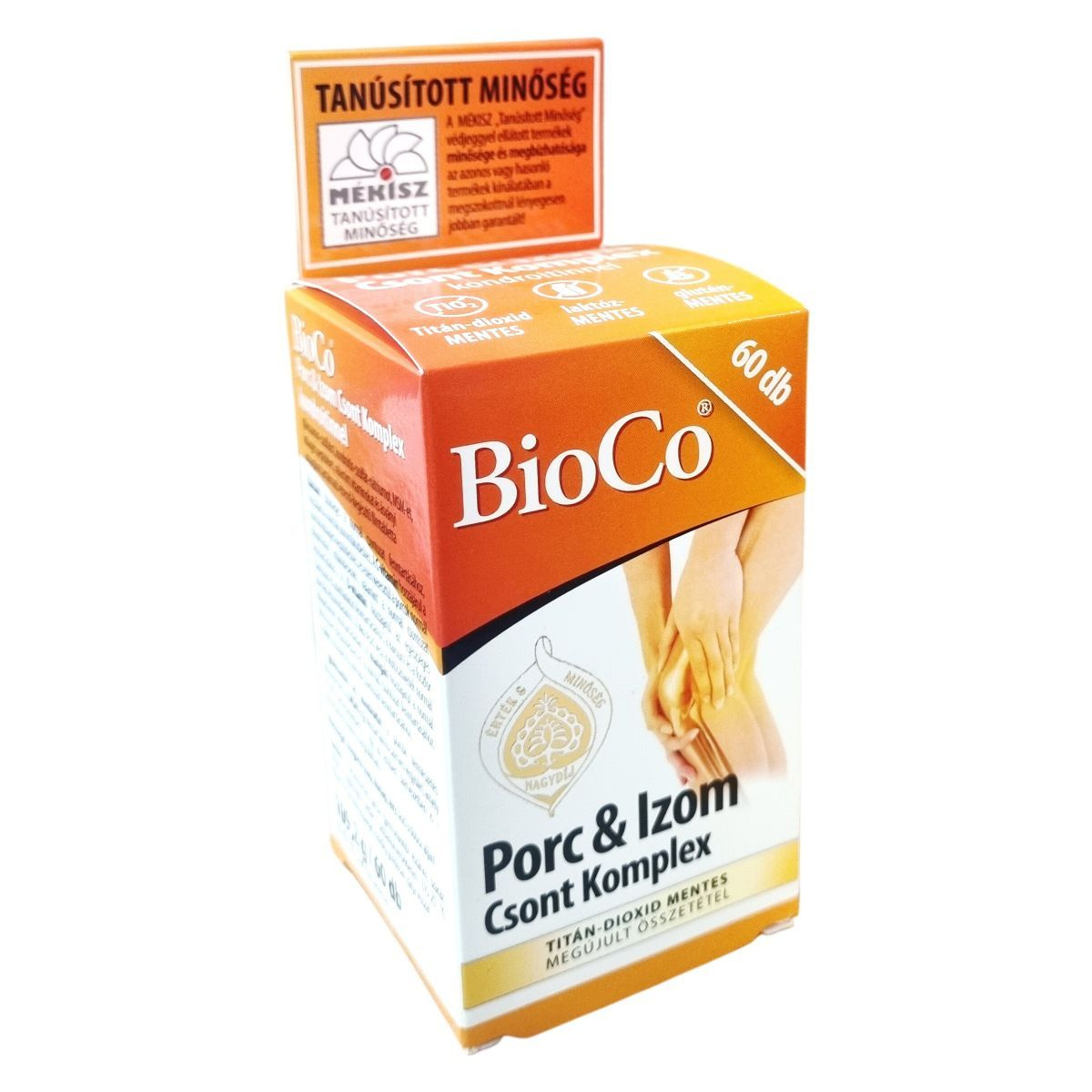 A BioCo Porc & Izom Csont Komplex egy Magyarországon fejlesztett és gyártott étrend-kiegészítő, amely glükozamin-szulfátot, kondroitin-szulfátot, MSM-et, kollagén peptideket, vitaminokat és ásványi anyagokat tartalmaz. A termék titán-dioxid mentes, új nyeléskönnyítő bevonattal rendelkezik, amely elősegítheti a könnyebb alkalmazást. Ajánlott túlsúllyal küzdőknek, sportolóknak, fizikai munkát végzőknek és idősebbeknek, akik fokozottan figyelnek csontrendszerük és izomműködésük egészségére. A készítmény összetevői között megtalálható a kalcium, mely a normál csontozat fenntartásához, a C-vitamin a normál kollagénképződéshez és porcképződéshez járulhat hozzá. A D-vitamin segítheti a kalcium és foszfor normál felszívódását, valamint az izomfunkció fenntartását. A réz és a mangán részt vehet a kötőszövet normál állapotának fenntartásában. A cink hozzájárulhat a csontozat egészségéhez. Az étrend-kiegészítő filmtabletta 60 db-os kiszerelésben kapható, és a készítmény minden adagja megfelel a napi beviteli referenciaértékeknek bizonyos vitaminok és ásványi anyagok esetében. A termék nem tartalmaz laktózt, glutént és titán-dioxidot. Fontos, hogy a termék nem helyettesíti a kiegyensúlyozott étrendet és az egészséges életmódot.