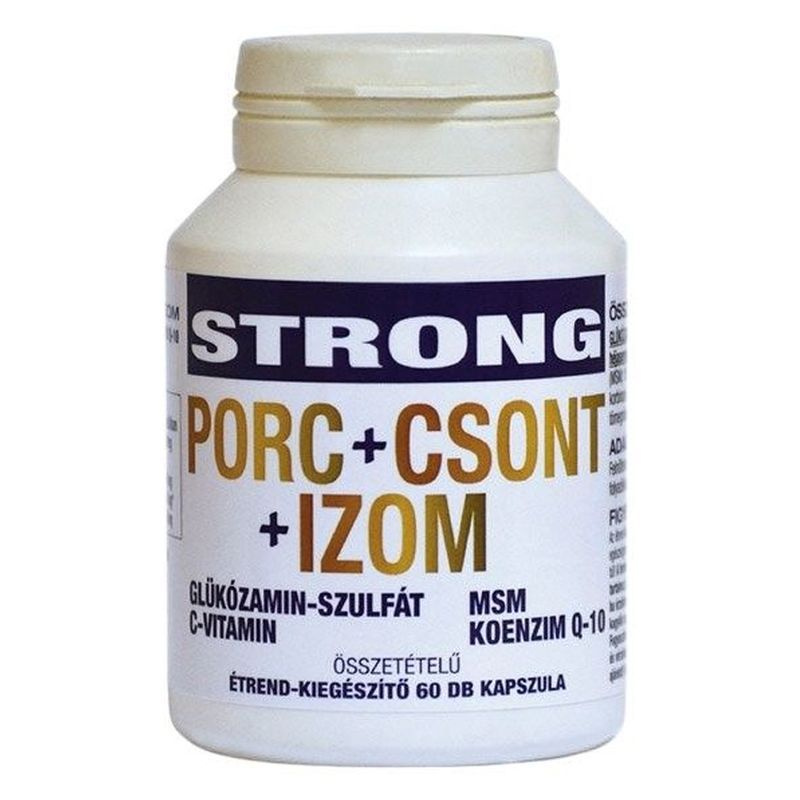 A Strong Porc + Csont + Izom kapszulában lévő C-vitamin hozzájárul a megfelelő kollagénképződéshez, ezen keresztül a porcok normál működéséhez. A porcok egészségéért felelős gükózamin-szulfát, MSM, és természetesen a koenzim Q10, mely a szervezetünk öregedésével a sejtekben csökken, így pótolni kell!