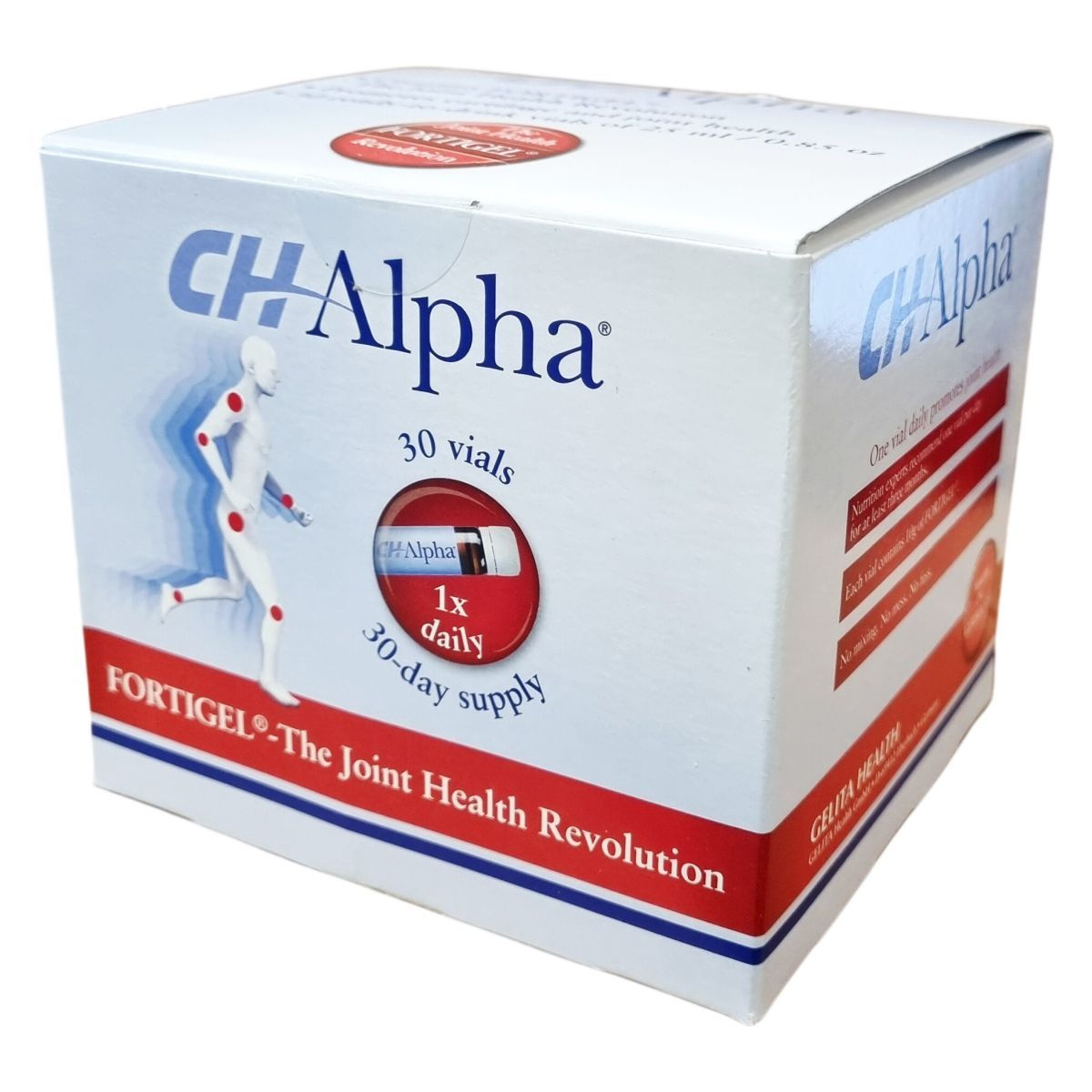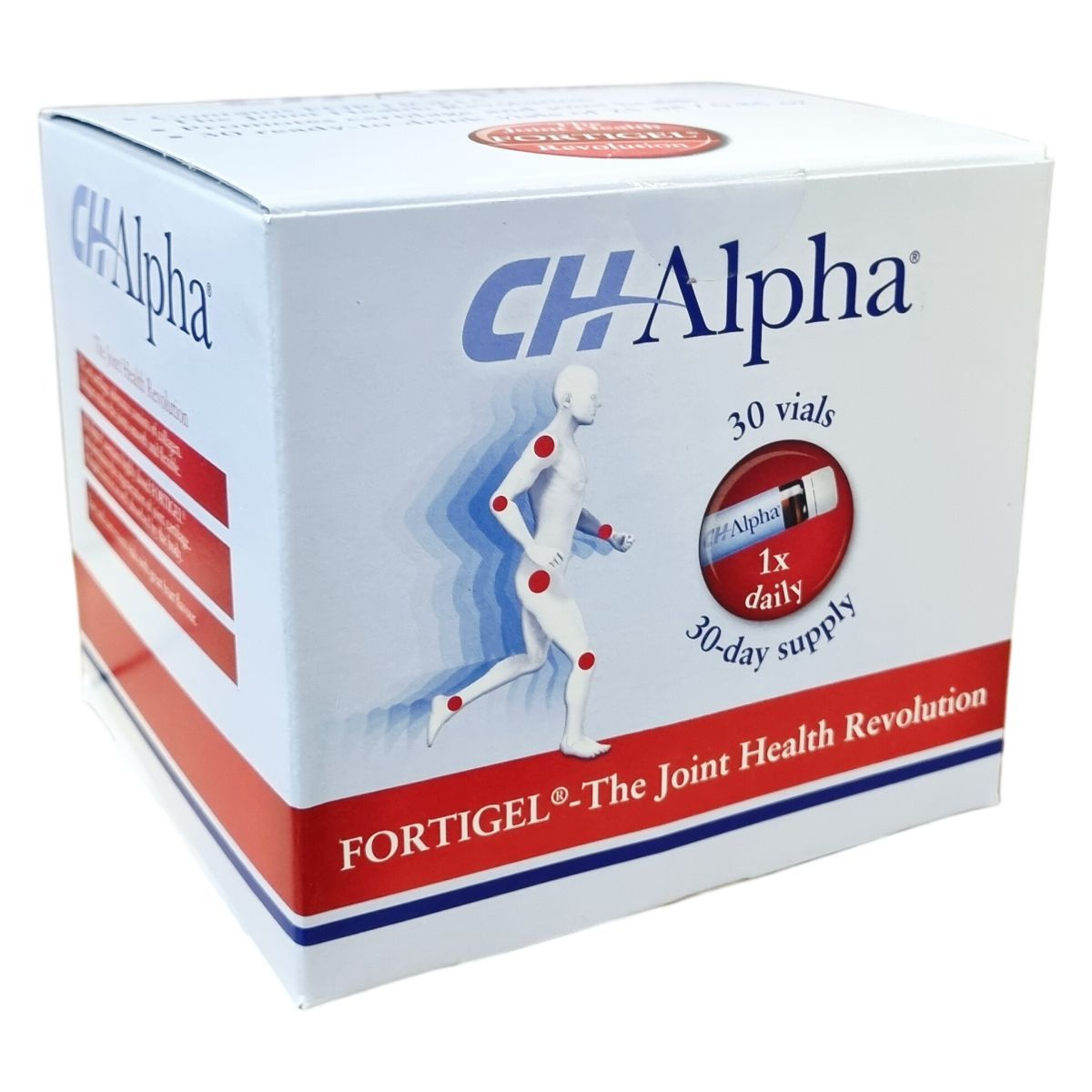 A CHAlpha® termék a FORTIGEL® hidrolizált kollagénpeptidet tartalmazza, amely a porcszövet egyik fő alkotóeleme. A készítmény kiváló felszívódású folyékony ampullákban kerül forgalomba, kellemes gyümölcsös ízesítéssel. A termék általánosan javasolt adagja egy ampulla naponta, a legjobb hatás eléréséhez legalább három hónapig folyamatosan javasolt a használata. Az ampullák használata egyszerű, előre adagolt mennyiséget biztosít, így nincs szükség keverésre vagy méricskélésre. A készítmény nem tartalmaz glutént és laktózt, allergének közül árpát tartalmaz. A termék pH-értéke 3,9–4,2 között mozog, sűrűsége pedig 1,145–1,165 g/ml.