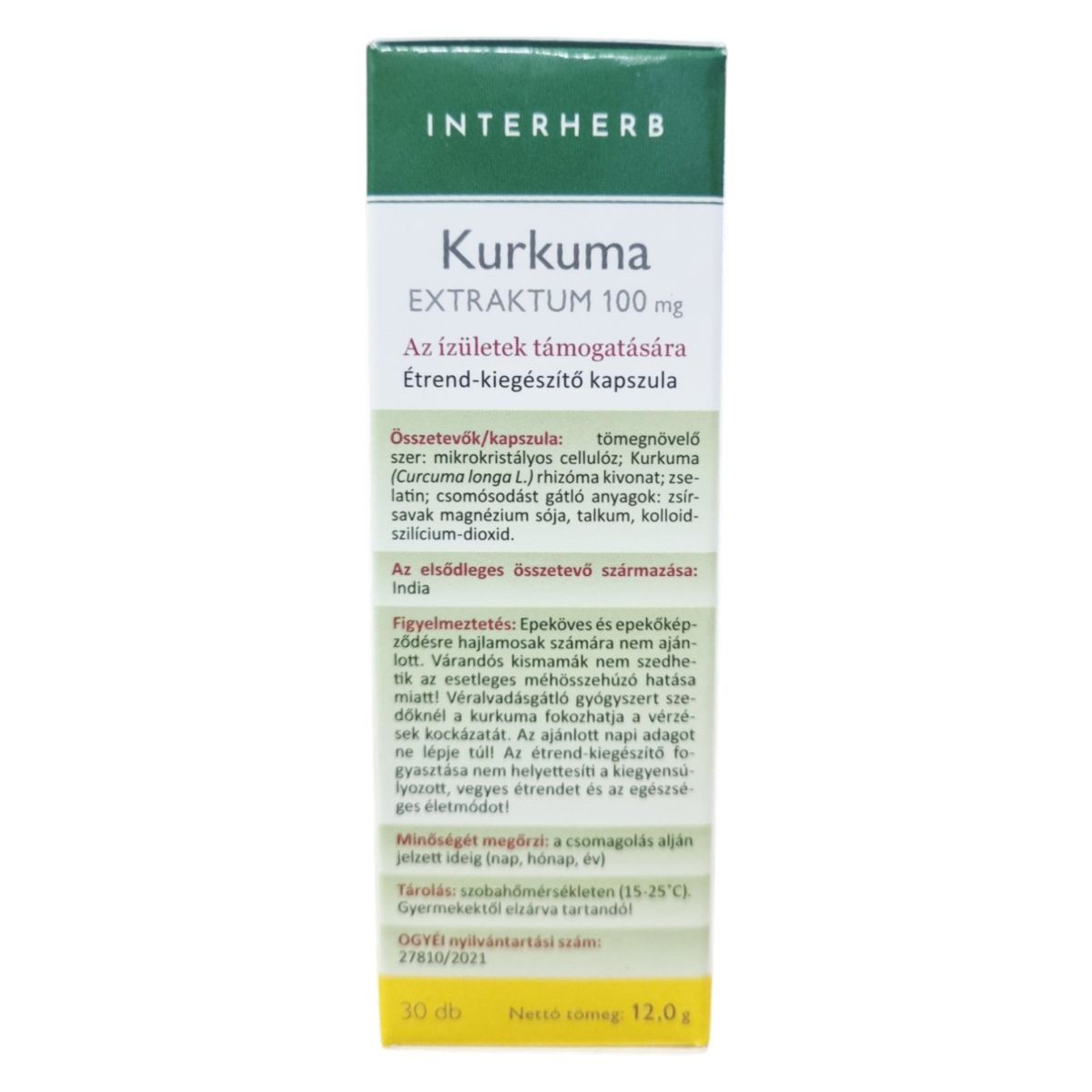 Az INTERHERB Kurkuma EXTRAKTUM 100 mg kapszula az ízületek támogatására készült, különösen magas, 95%-os kurkumin tartalommal. A kurkuma, amely az ázsiai konyha jellegzetes fűszere, hozzájárulhat az emésztőnedvek termeléséhez, a máj és az epe normál működéséhez, valamint az immunrendszer megfelelő működéséhez. A termék koncentrált extraktumot tartalmaz, amely 100 mg kivonat formájában 2500 mg növényi őrleménynek felel meg. A készítmény hazai fejlesztésű, bevizsgált alapanyagokból készült, és a megbízható minőséget garantálja.
