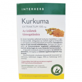 Az INTERHERB Kurkuma EXTRAKTUM 100 mg kapszula az ázsiai konyhában népszerű kurkuma koncentrált kivonatát tartalmazza, amely hozzájárulhat az ízületek védelméhez és az emésztés támogatásához. A termék standardizált kurkumin hatóanyag tartalommal rendelkezik, amely segítheti az emésztőnedvek termelését, és támogathatja a máj és az epe normál működését. A kurkuma szerepe lehet az immunrendszer megfelelő működésében, valamint a normál vérkeringés és a szív-funkciók fenntartásában is. A készítmény hazai fejlesztésű, bevizsgált alapanyagokból készült, és megbízható minőséget garantál.