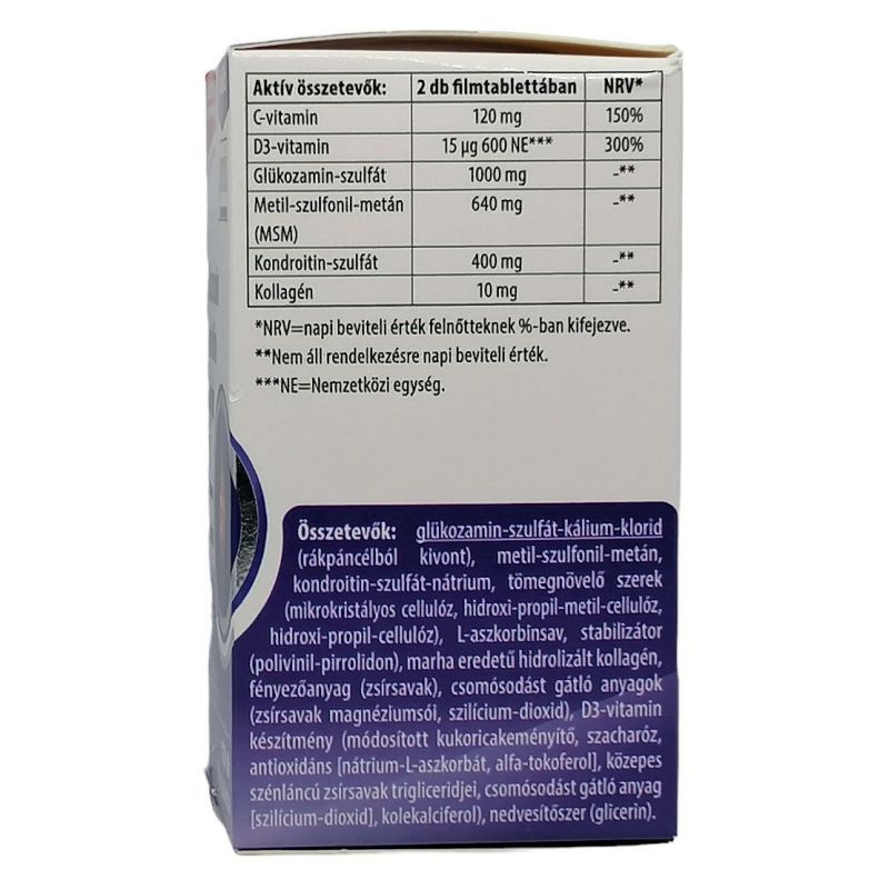 A készítmény glükozamin-szulfátot, kondroitin-szulfátot, MSM-et, kollagént, D3- és C-vitamint tartalmazó étrend-kiegészítő, amely hozzájárulhat a porcok, csontok és ízületek normál működéséhez.
