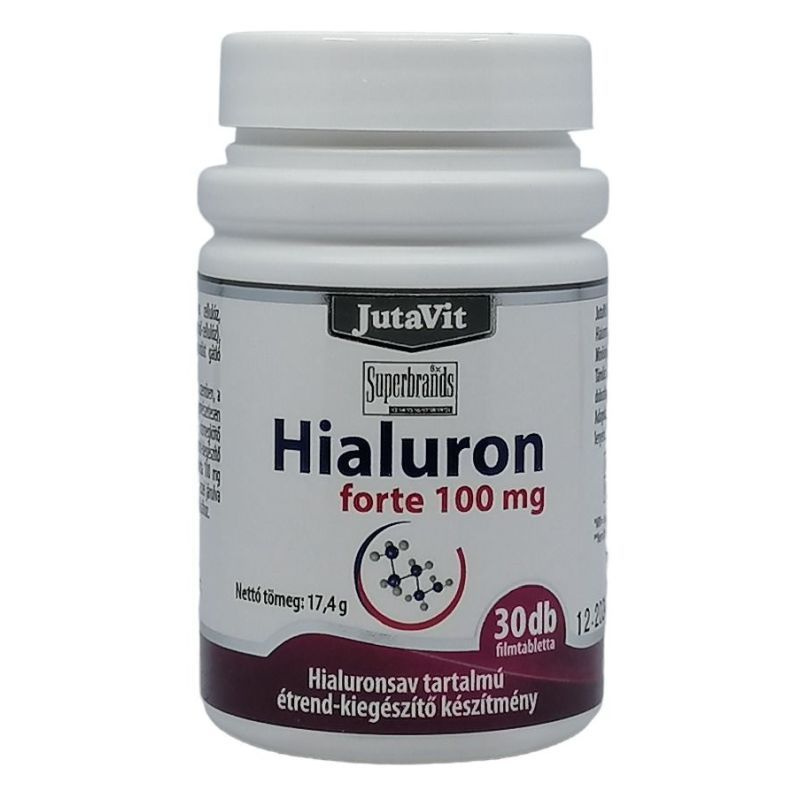 A hialuronsav az emberi szervezetben - többek között a szemben, a bőrszövetben, az izmokban, az ízületekben - természetesen megtalálható nagy molekulájú szénhidrát, mely nagy vízmegkötő képességgel rendelkezik. Kiegészítő bevitele étrend-kiegészítő formájában is biztosítható. A JutaVit hialuron forte tabletta 100mg hialuronsavat tartalmaz, nátrium-hialuronát formájában, ezzel járulva hozzá a szervezetben lévő hialuronsav mennyiségének pótlásához.