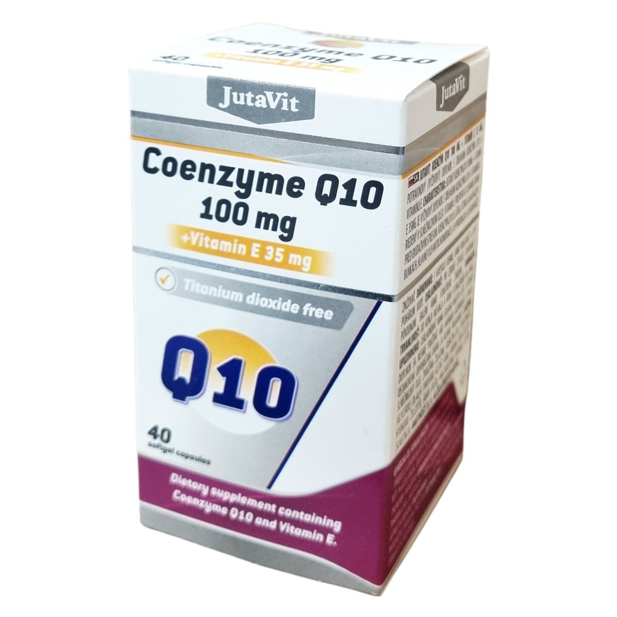 A JutaVit Koenzim Q10 100 mg + E-vitamin 35 mg lágyzselatin kapszulák koenzim Q10-et, valamint E-vitamint tartalmazó étrend-kiegészítők, melyek a sejtek mitokondriumában található anyagot pótolják. A koenzim Q10 termelődése az életkor előrehaladtával csökkenhet, míg az E-vitamin hozzájárulhat a sejtek oxidatív stresz elleni védelméhez. A készítmény napraforgóolajban diszpergált, állati eredetű zselatin kapszula formájában kerül forgalomba. A terméknek nincs meghatározott napi beviteli referencia értéke felnőttek számára. A kapszulák javasolt adagolása napi egy, amelyet reggel, egészben kell lenyelni, vízzel leöblítve. Fontos a termék gyermekektől való távol tartása, valamint, hogy az étrend-kiegészítő nem helyettesíti a változatos étrendet és az egészséges életmódot. A terméket szobahőmérsékleten, fénytől védve, az eredeti csomagolásban kell tárolni.
