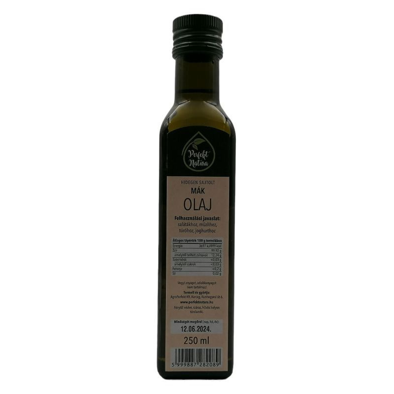 Összetevők: 100% mák olaj. Tartósítószert, vegyi anyagot és adalékanyagot nem tartalmaz!