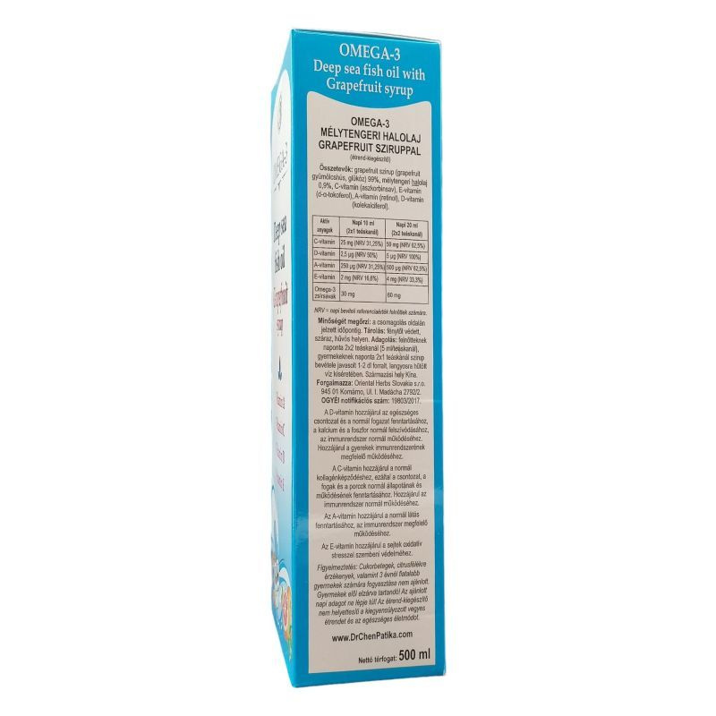 Kellemes ízű szirup felnőtteknek és gyermekeknek egyaránt. A halolajban található többszörösen telítetlen zsírsavak hozzájárulnak a keringési rendszer (szív és érrendszer) egészséges működéséhez, a vér normál triglicerid szintjének megtartásához és a normál véralvadás fenntartásához.