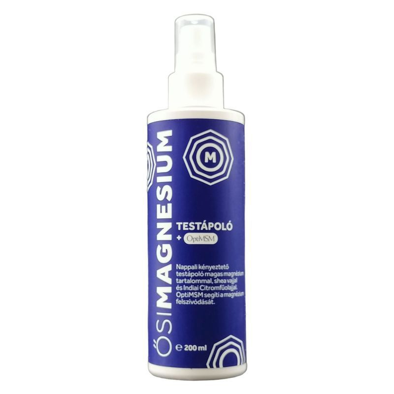 Nagy dózisú elemi magnéziumot juttat a szervezetbe. 25% Ősi Magnézium Koncentrátummal, OptiMSM-el, shea vajjal és édes mandulaolajjal készül, így táplálja és hidratálttá varázsolja a bőrt, illetve támogatja az ízületeket és a csontozatot is. Érzékenyebb bőrűeknek is ajánlott. Könnyed, lágy formulája jól kenhető, gyorsan beszívódik és nem hagy maga után zsíros érzést. Kellemes citrusos illatát a kelet indiai citromfű (BIO) illóolajnak köszönheti, nem hivalkodó, így reggel és este is alkalmazható. Használata megegyezik az általános testápolókéval. Megfelelő mennyiséget oszlasson el a bőrén és dolgozza el laza mozdulatokkal.