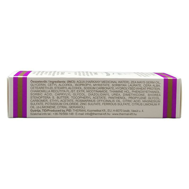 Összetevők: Harkányi gyógyvíz, Vörösbor kivonat, Kénes hatóanyagok, Shea vaj és növényi olajok, E-vitamin.