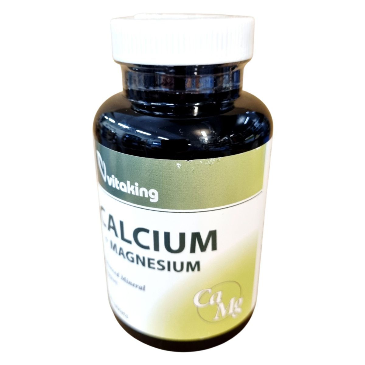 A Vitaking Calcium + Magnesium étrend-kiegészítő 100 tablettát tartalmaz, és kalciumot, valamint magnéziumot biztosít a szervezet számára. A kalcium szükséges lehet a normál csontozat és a fogak fenntartásához, míg a magnézium részt vehet a normál csontozat fenntartásában. A termék összetevői között megtalálható az osztriga kagylóhéj por, magnézium-oxid, kalcium-karbonát, valamint különböző emulgálószerek és stabilizátorok. A termék forgalmazója a Vitaking Kft., és az OGYÉI nyilvántartási száma 27252/2021.