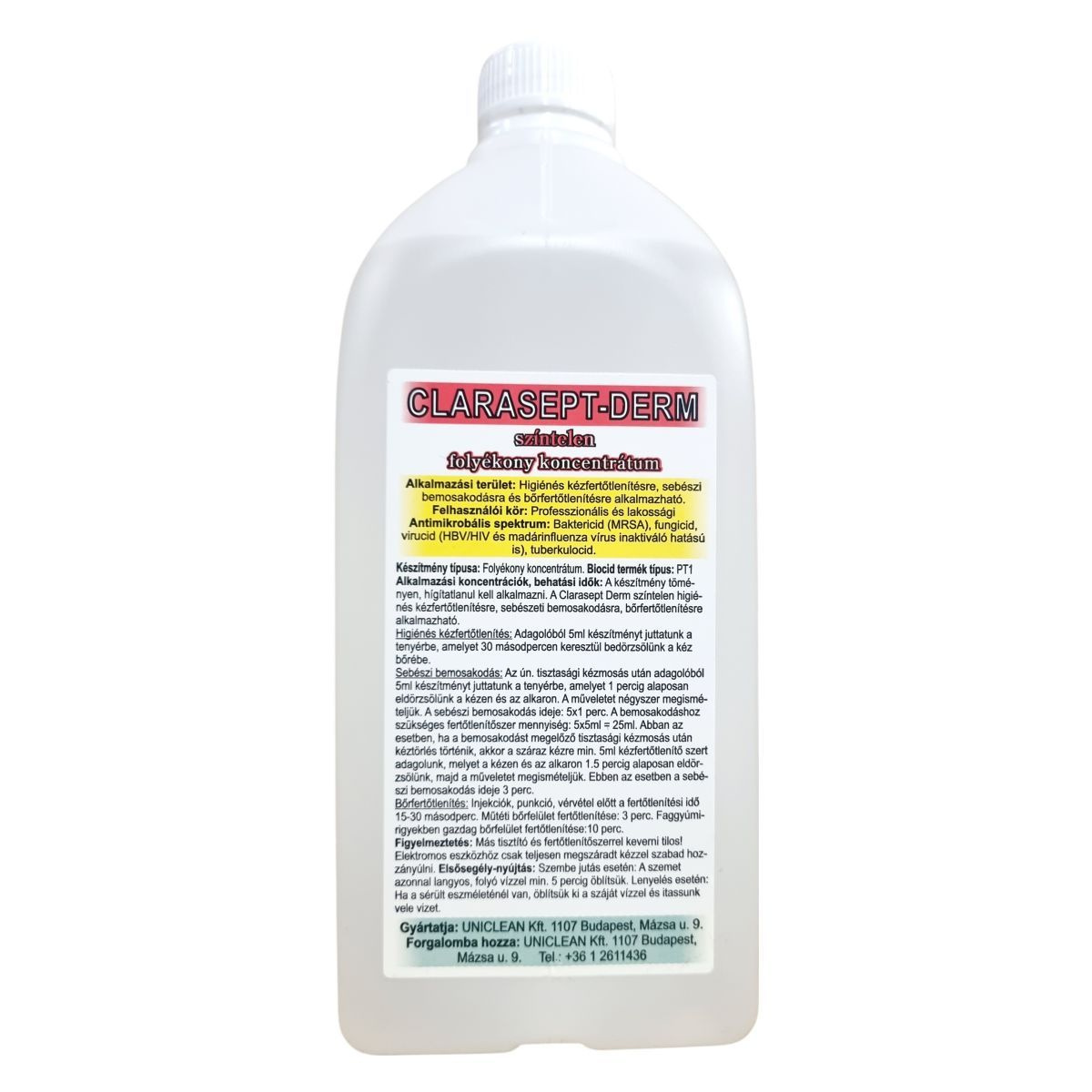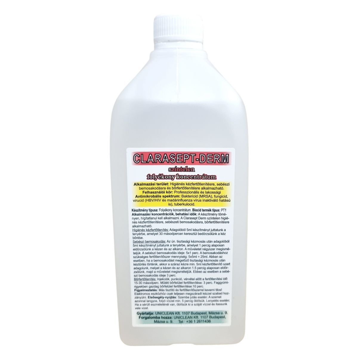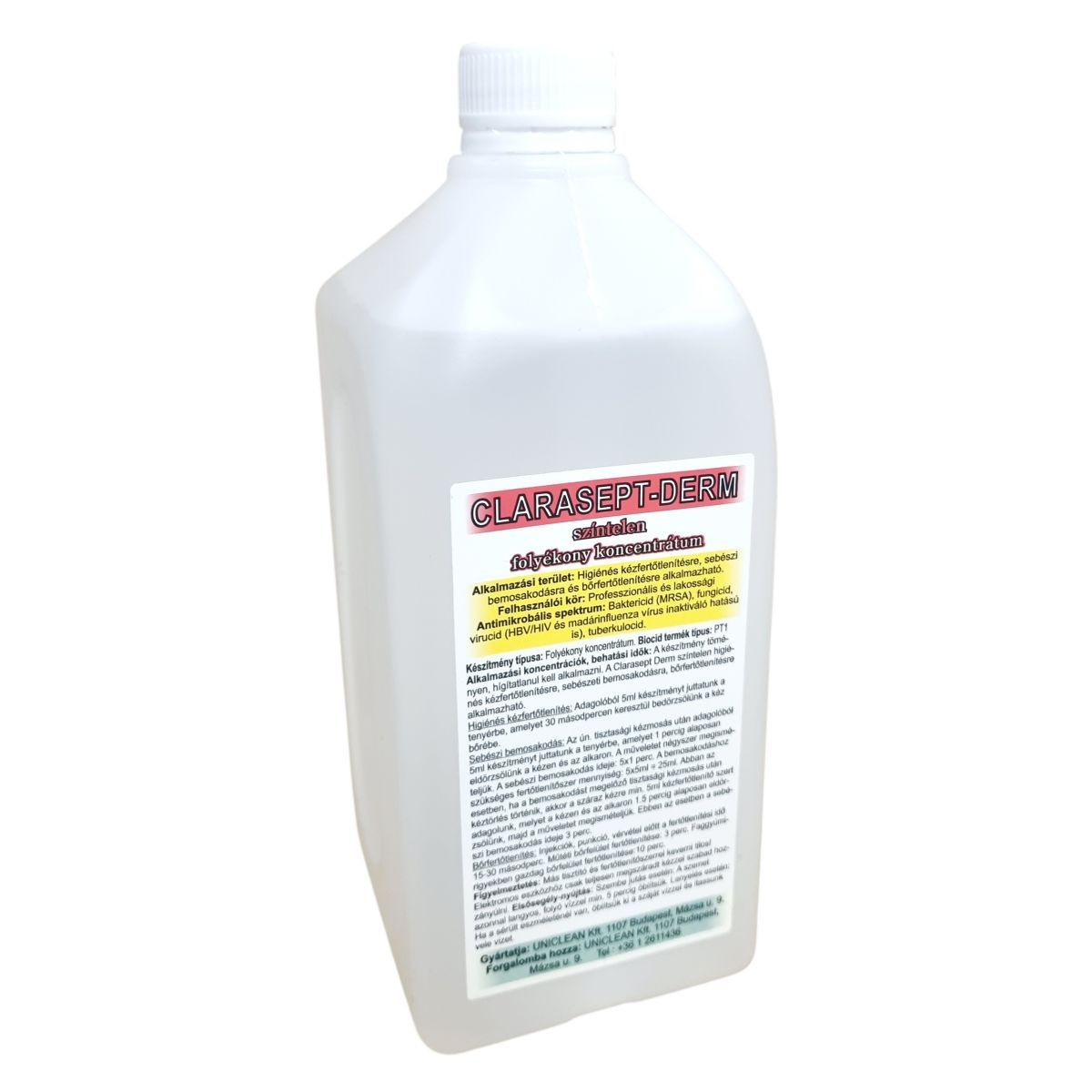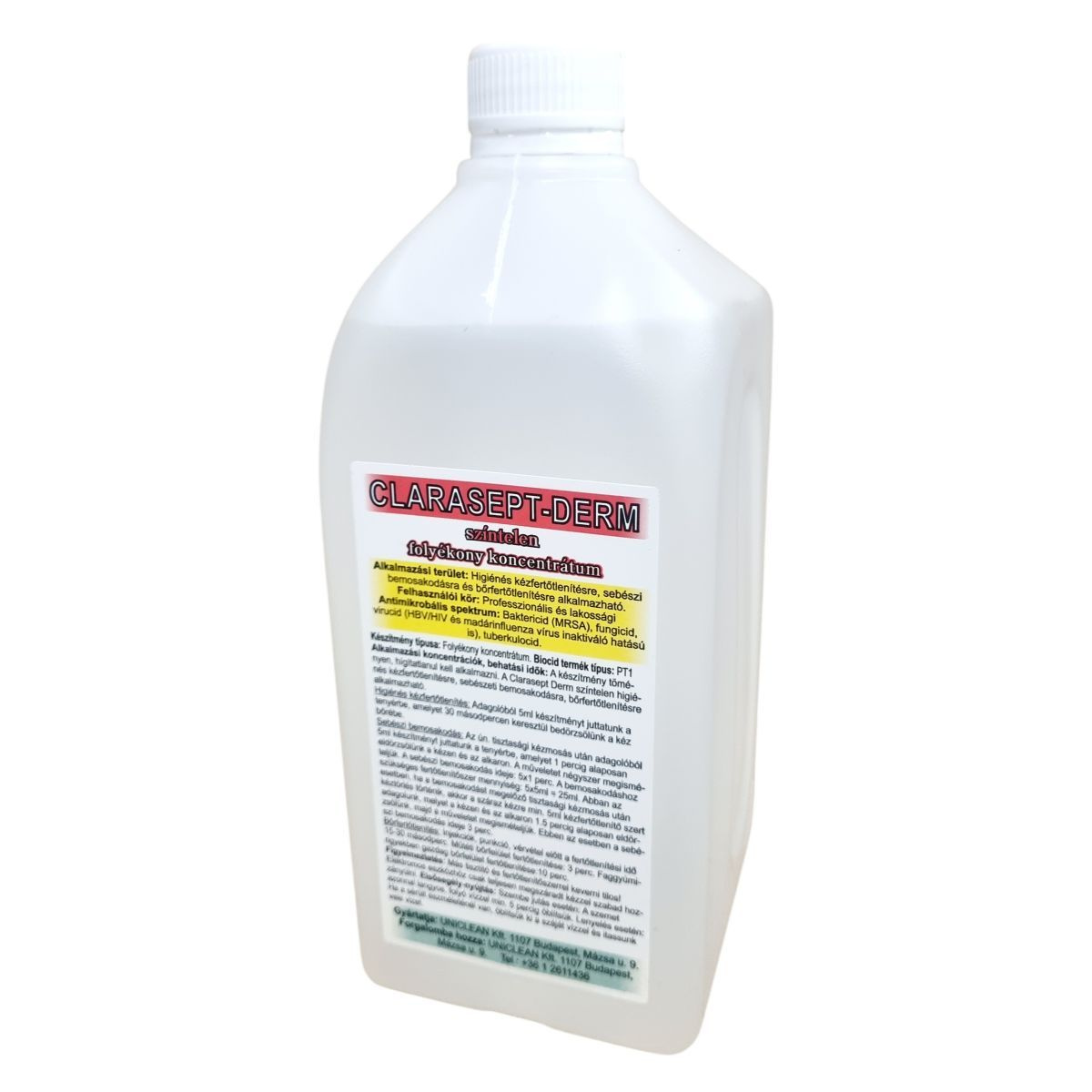 A Clarasept-Derm egy színtelen, folyékony fertőtlenítőszer koncentrátum, mely professzionális és lakossági használatra egyaránt alkalmas kéz- és bőrfertőtlenítésre, baktérium-, gomba- és vírusölő hatással.