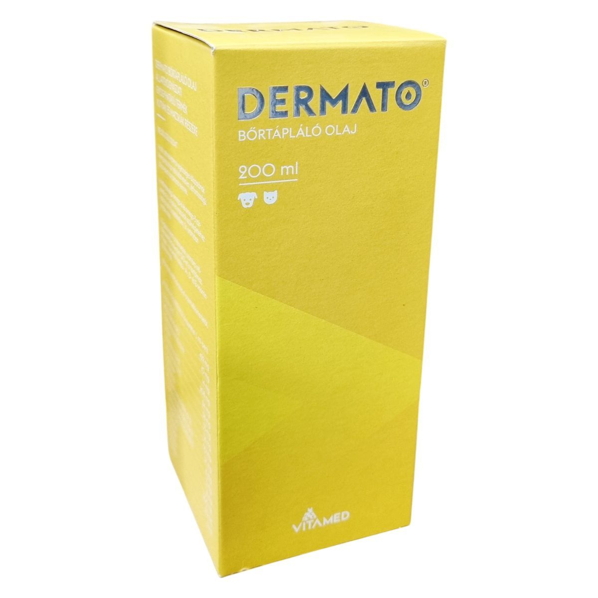 A Dermato bőrtápláló olaj egy belsőleges készítmény kutyák és macskák bőrének, szőrének és karmaik egészségének fenntartására, létfontosságú zsírsavakat és antioxidánsokat tartalmazó komplex ápoló olaj.
