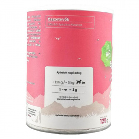 Ajánlott napi adag: 1,25g/5kg. 1 mérőkanál kb. 3g. Kúraszerűen, vagy folyamatosan is adható.