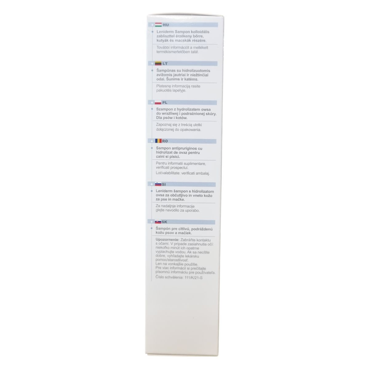 A Leniderm sampon hidratáló és nyugtató hatású, különösen az érzékeny vagy irritált bőr ápolására alkalmas, amit hidrolizált zabkivonattal készítettek. A termék kutyák és macskák bőrápolására készült, és több európai országban is elérhető, az adott ország nyelvén hozzáférhető termékleírással és használati útmutatóval. A termék még kifejezetten figyelmeztet a szemmel való érintkezés elkerülésére, valamint csak külső használatra javasolt. Gyártója az olasz NEXTMUNE ITALY S.R.L., mely a hidrolizált zab gyengéd hatását alkalmazza a bőrviszketés és érzékenység enyhítésére.