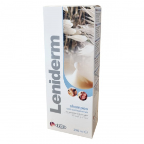 A Leniderm sampon kifejezetten érzékeny vagy viszkető bőrű kutyák és macskák számára készült, hogy enyhítse a kellemetlenségeket és ápolja a bőrt.