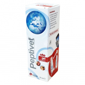 A Peptivet® Oto Gél egy eudermális, azaz a bőr természetes egyensúlyát támogató fültisztító készítmény kutyák és macskák számára. Kíméletesen tisztítja a külső hallójáratot az irritált bőrfelület nyugtatása mellett, és segíti a bőr barrier funkciójának fenntartását. Alkalmazása során a forelékező szennyeződéseket az előzetes tisztítást követően adagolja a fülbe az eszköz segítségével, majd a fül tövének megmasszírozásával biztosítja a hatóanyagok egyenletes eloszlását. A készítmény kizárólag helyi használatra készült, és csak állategészségügyi vagy állatápolási célokra alkalmazható. Használat közben kerüljük a szembe jutást, és ügyeljünk arra, hogy gyermekek ne férhessenek hozzá. A fel nem használt anyagot, valamint a keletkező hulladékokat a helyi előírásoknak megfelelően kell megsemmisíteni. A termék 25 ml-es kiszerelésben érhető el, és az eredeti csomagolásban, száraz, szobahőmérsékletű helyen tárolva akár három évig használható fel.