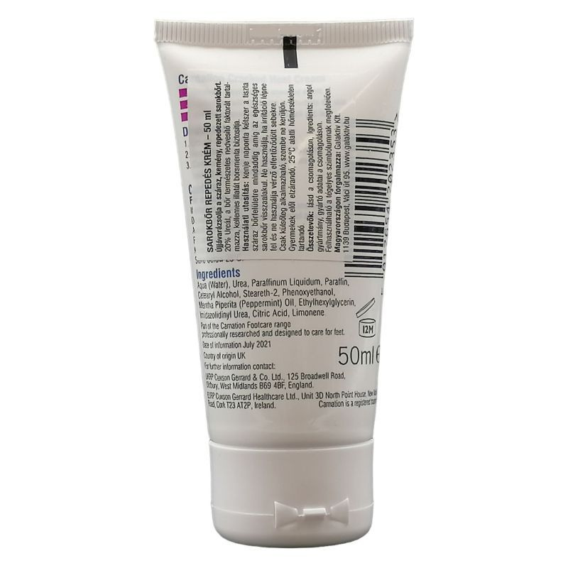 20% Ureát, a bőr természetes nedvesítő faktorát tartalmazza, kellemes illatát borsmenta biztosítja. Használati utasítás: a tisztára mosott, alaposan megszárított kezelendő területet naponta kétszer, reggel és este kell bekenni a bőrsimító krémmel mindaddig, amíg a lábsarok egészséges bőrfelülete vissza nem alakul. Ne használja, ha irritáció lépne fel és ne használja vérző elfertőződött sebekre.