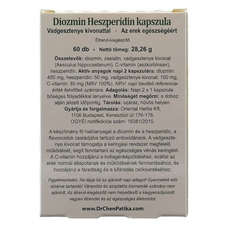 A diozmin flavonoid jótékony hatással van a keringési rendszerre, hozzájárulhat a vénák erősítéséhez és rugalmasságának javításához. Ezen kívül segíthet a lábak fáradtságának és duzzanatának csökkentésében, így ideális választás mindazok számára, akik aktívan élnek. Az antioxidáns hatása révén a kapszula segíthet a sejtek védelmében, így hozzájárulva az általános jólléthez.