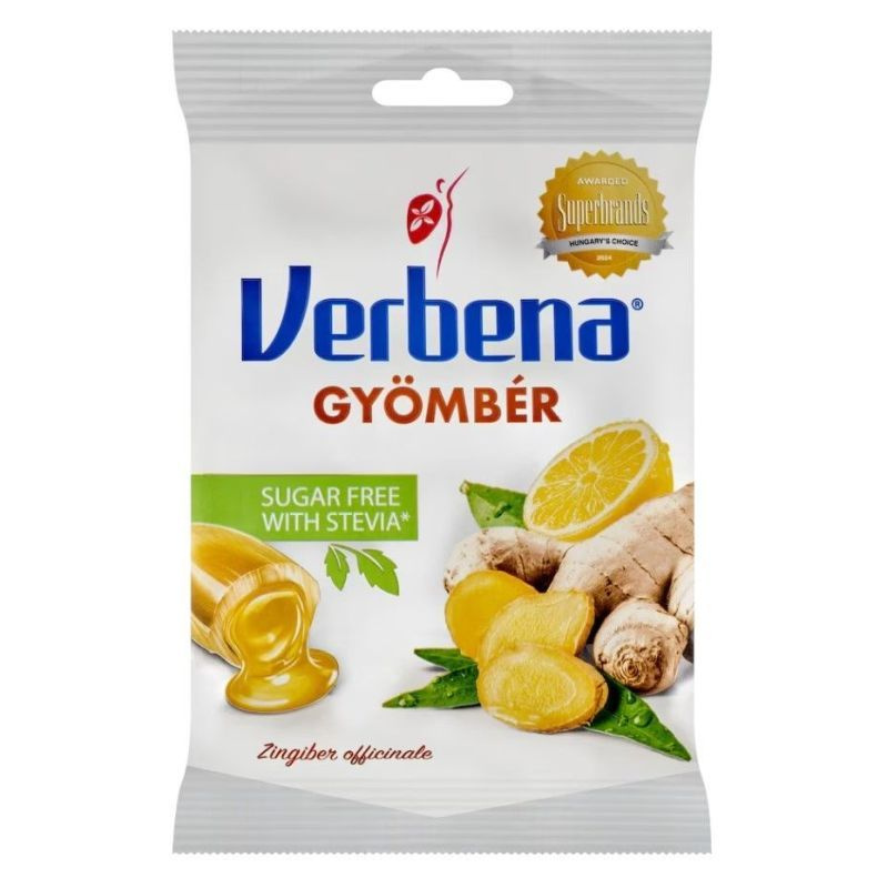 Töltött keménycukorka gyömbérrel, édesítőszerekkel, C-vitaminnal.