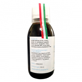 Folyékony növényi alapú étrend-kiegészítő készítmény, amely gyógynövényeket és almalét tartalmaz, az egészséges életmód részeként fogyasztható.