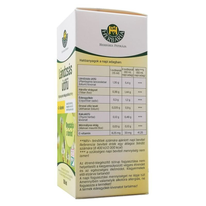 A szirup fő összetevője a ládzsás útifű kivonata, amelyet más, felső légútra ható gyógynövények kivonataival dúsítottunk.