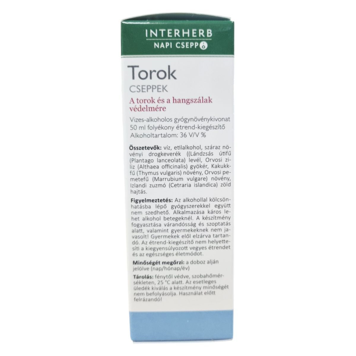 Az INTERHERB NAPI CSEPP Torok CSEPPEK egy vizes-alkoholos gyógynövénykivonat, amely a torok és a hangszálak védelmére szolgál. Az alkoholtartalma 36 V/V %. A termék különösen hasznos lehet azok számára, akik hangjukat huzamosabb ideig használják, mint például pedagógusok és énekesek. A készítmény hatóanyagai nyugtató hatásúak lehetnek a szájra, garatra és a hangszálakra. A napi adag 2 ml kivonatnak felel meg, amely 400 mg gyógynövény drogból készül.