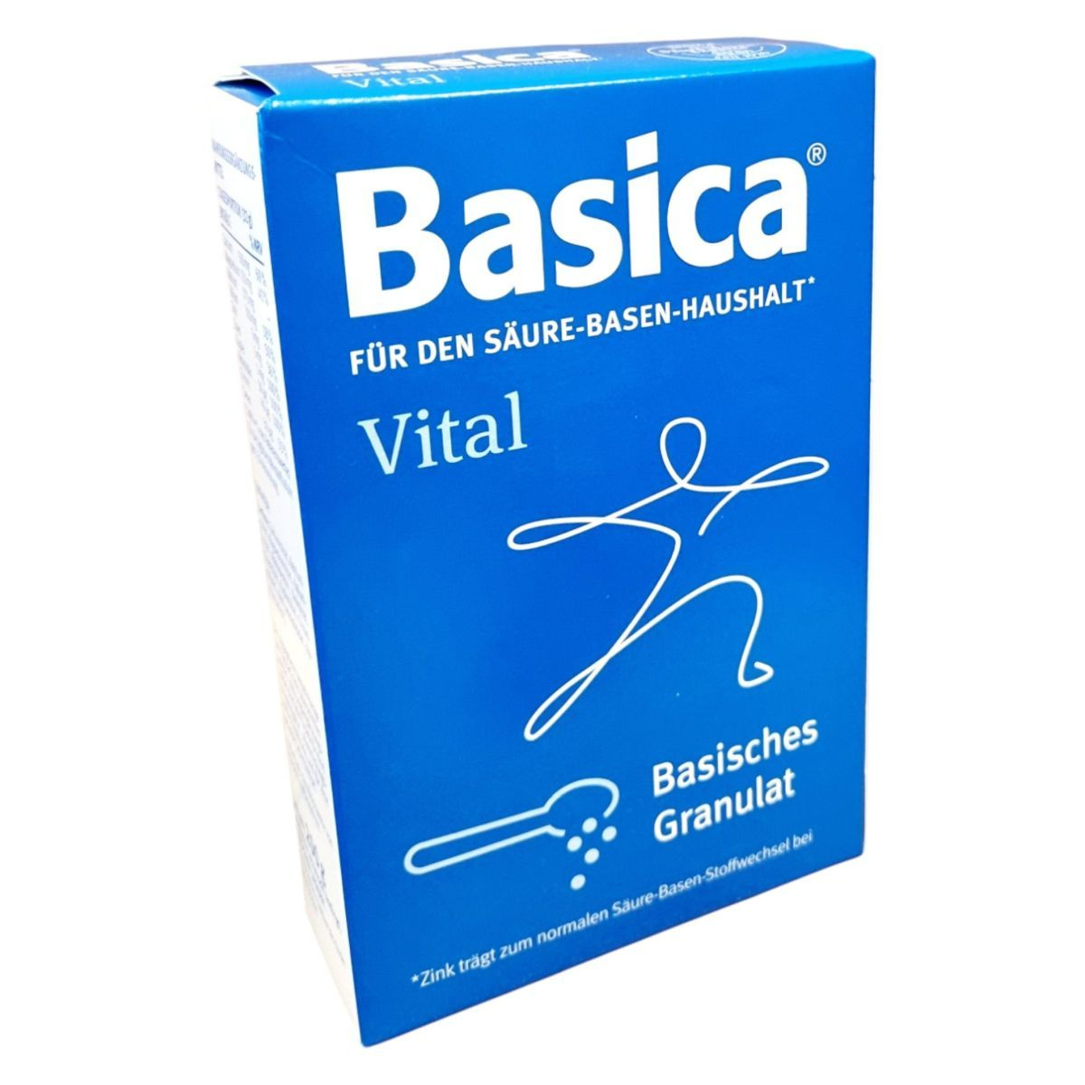 A Basica Vital egy bázikus ásványi anyagokat és nyomelemeket tartalmazó étrend-kiegészítő granulátum, amelyet hideg vagy meleg ételekbe keverve lehet fogyasztani. A termék cinket, magnéziumot, kalciumot, vasat, rezet, krómot, molibdént és szelént tartalmaz, amelyek hozzájárulhatnak a normál sav-bázis egyensúly fenntartásához, a fáradtság csökkentéséhez, a normál szellemi működés fenntartásához, valamint a sejtek oxidatív stresszel szembeni védelméhez. A termék gluténmentes, de laktózt tartalmaz, és nem tartalmaz aromákat, édesítőszereket vagy jódot. A praktikus adagoló a doboz belső oldaláról választható le. A termék gyártója a Protina Pharm. GmbH, forgalmazója a Dr. Kocsis & Hoffmann Pharma Kft.