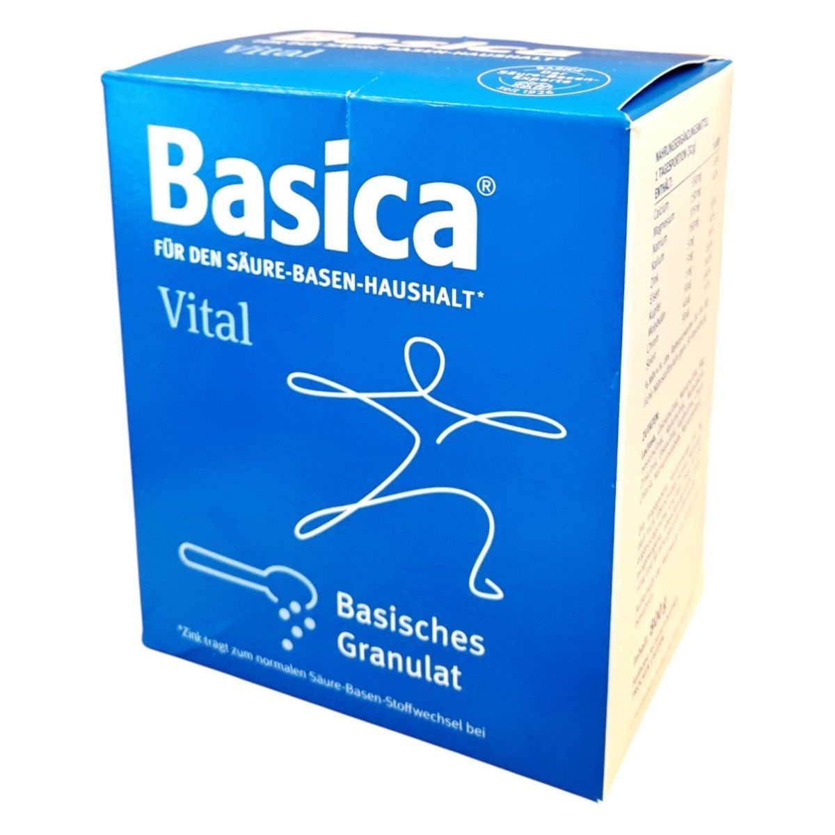 A Basica Vital étrend-kiegészítő granulátum bázikus ásványi anyagokat és nyomelemeket tartalmaz, amelyek hozzájárulhatnak a normál sav-bázis egyensúly fenntartásához. A termék cinket, magnéziumot és szelént tartalmaz, amelyek támogathatják az immunrendszer normál működését. A granulátum íztelen, és hideg vagy meleg ételekbe keverhető. A termék laktózt tartalmaz, és nem ajánlott 4 éves kor alatti gyermekek számára. A Basica Vital granulátumot a Protina Pharm. GmbH gyártja Németországban, és a Dr. Kocsis & Hoffmann Pharma Kft. forgalmazza Magyarországon.
