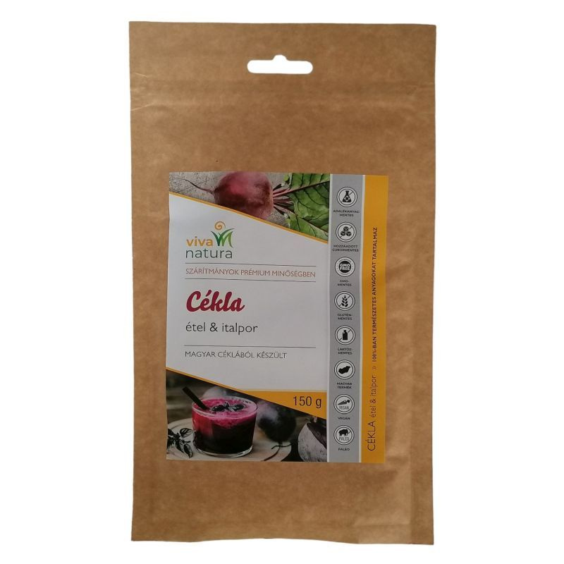 Viva natura cékla por alutasak 150 g. Tiszta természet 100%-ban természetes anyagokat tartalmaz, mentes minden színezéktől, ízfokozótól, tartósítószertől.