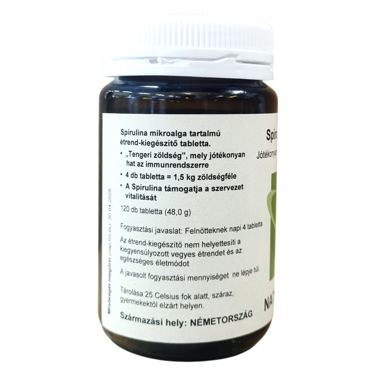 A Spirulina mikroalga egy tengeri zöldség, amelynek napi 4 tablettája 1,5 kg zöldségféle hatóanyagtartalmának felel meg. Származási helye Németország. A termék Naturpharma márkanév alatt kerül forgalomba, és kizárólagos forgalmazója az EU-Pentafarm Kft., Budapest.