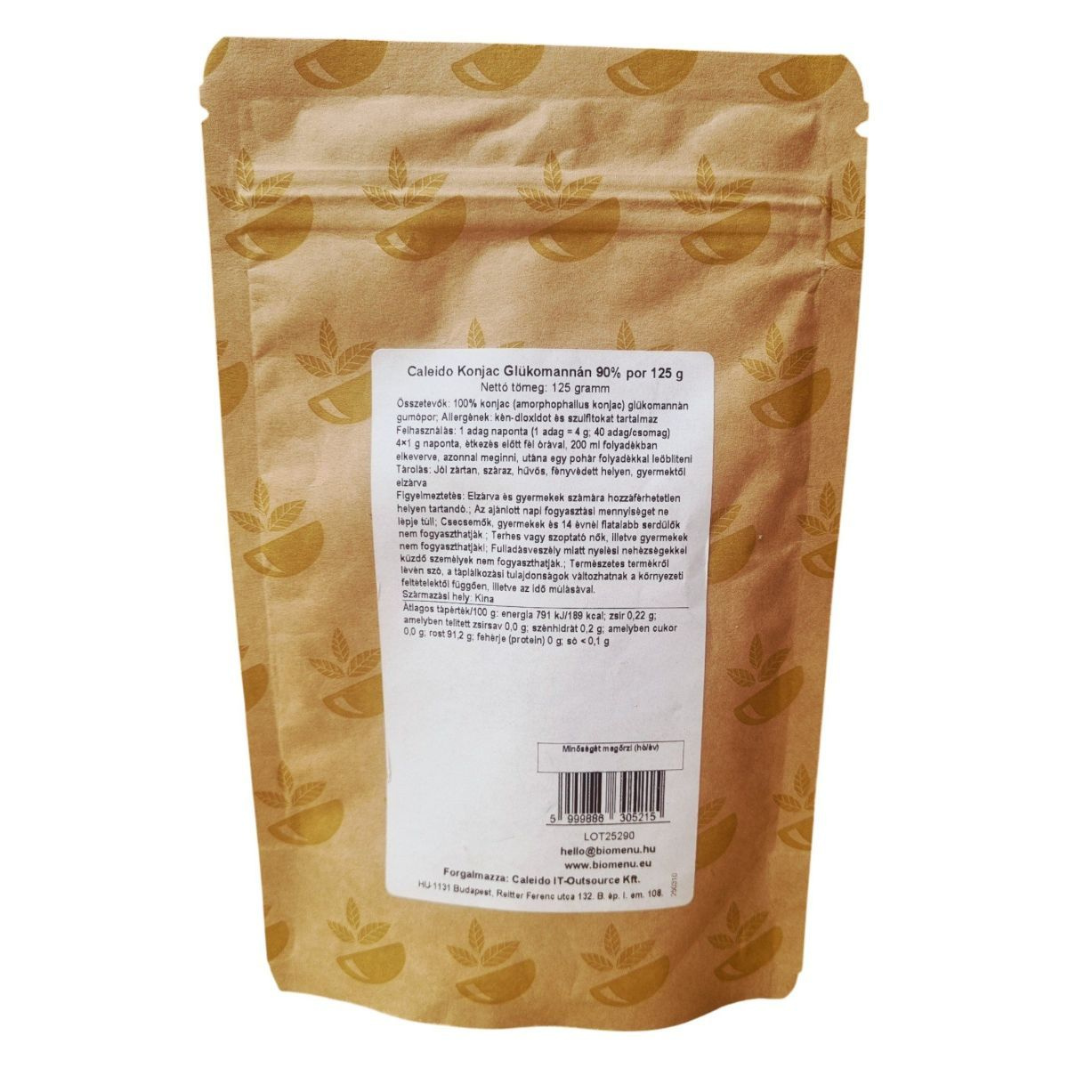 A Caleido Konjac Glükomannán 90% por egy természetes eredetű étrend-kiegészítő, amely Kínából származik. A termék fő összetevője a konjac glükomannán, amely egy vízben oldódó rost. A termék 125 grammos kiszerelésben kapható, és 40 adag található egy csomagban. A termék használata előtt fontos, hogy a javasolt adagolást betartsuk, és elegendő folyadékot fogyasszunk mellé. A termék nem ajánlott gyermekek, terhes vagy szoptató nők számára, valamint azoknak, akik nyelési nehézségekkel küzdenek.