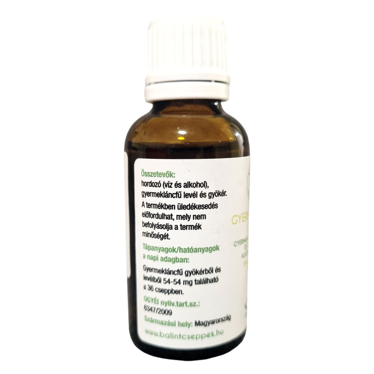 A Bálint Cseppek Gyermekláncfű csepp készítményben a gyermekláncfű levelének és gyökerének alkoholos oldata található meg, amely 30 ml-es kiszerelésben érhető el. A termék natúr hordozóként vizet és alkoholt tartalmaz, így a hatóanyagok oldódása biztosított. A termékben természetes üledékesedés előfordulhat, mely nem befolyásolja a minőséget. A napi adagban 36 csepp található, amelyből 54 mg gyermekláncfű gyökér és 54 mg gyermekláncfű levél van jelen. A termék Magyarországon készül. Az ajánlott adagolás a napi háromszori 12 csepp étkezések előtt, vízben feloldva. Fontos, hogy a javasolt mennyiséget ne lépjük túl, és a készítmény nem helyettesíti a változatos étrendet és az egészséges életmódot.