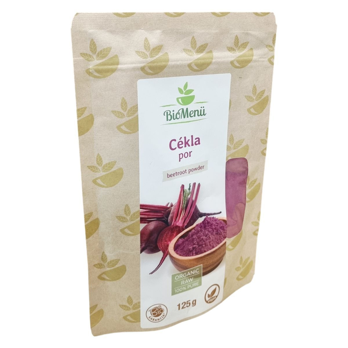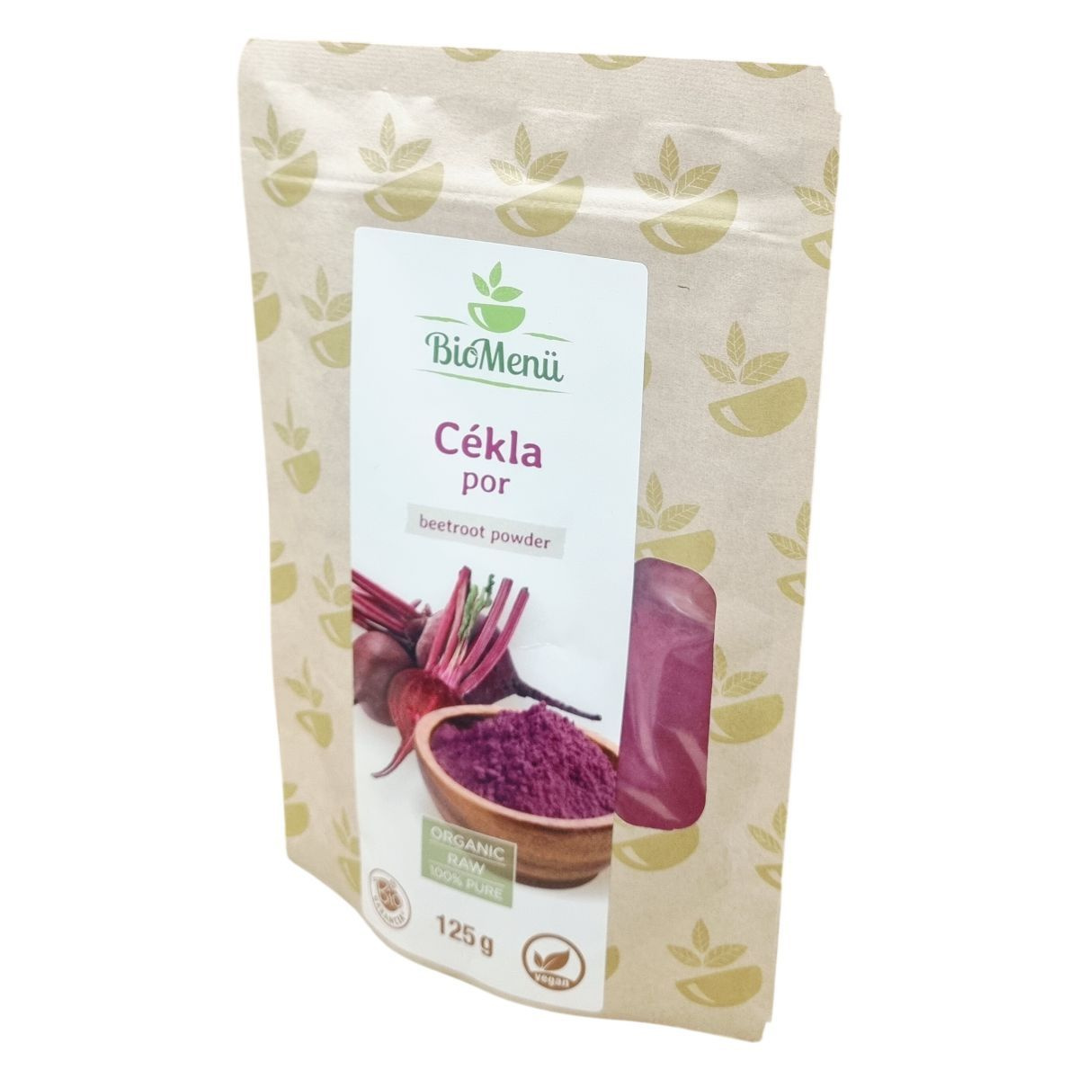 A BioMenü BIO Cékla por Olaszországban készül, 100%-ban bio összetevőből, egy tiszta, nyers növényi alapú termék, amely számos módon felhasználható, például hígítva fogyasztva frissítő italként, levesként vagy salátákhoz keverve. Vegán, bio és nyers étrendbe egyaránt illeszthető. Fontos a termék megfelelő tárolása, így hosszabb ideig megőrzi minőségét. Az átlagos tápértékek alapján tápláló és természetes összetevője lehet az étrendnek.