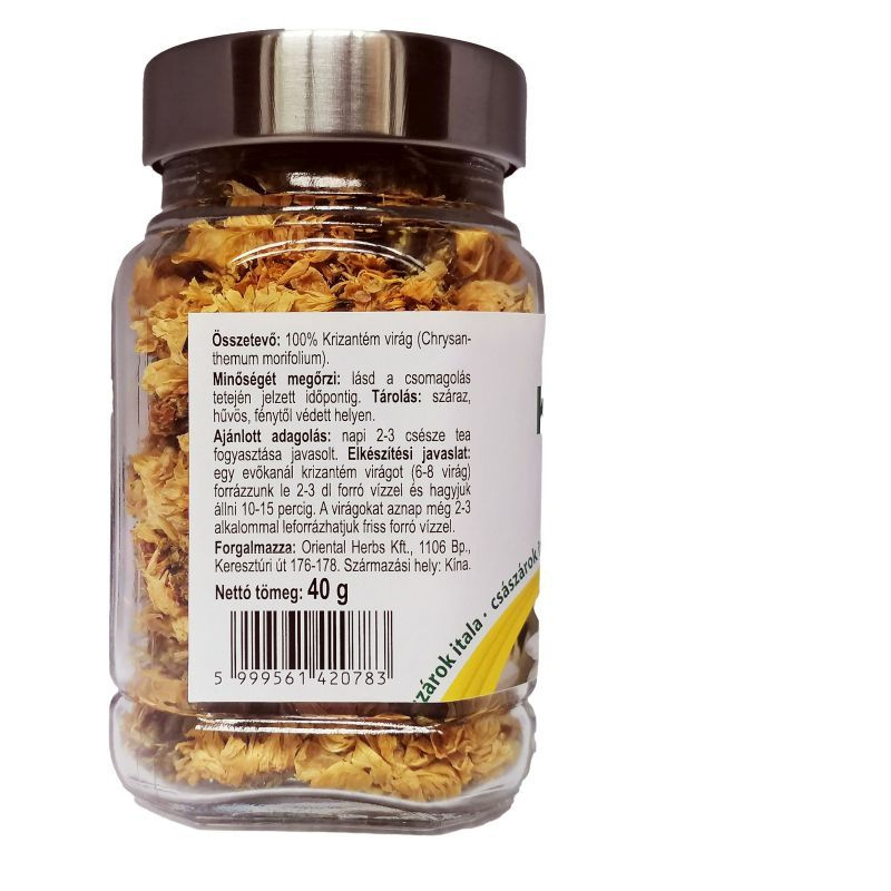 Felhasználási javaslat: egy evőkanál krizantém virágot (6-8 virág) forrázzunk le 2-3 dl forró vízzel és hagyjuk állni 10-15 percig.