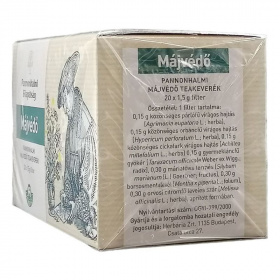 Mit tartalmaz még a készítmény? A teakeverék a hatóanyagokon kívül mást nem tartalmaz. Mikor ajánlott a teakeverék fogyasztása? Kúraszerűen alkalmazható önállóan, vagy kiegészítő kezelés formájában különböző eredetű májbántalmakban, a máj fokozott megterhelése (pl.alkohol) okozta májkárosodások, gyomor- és bélbántalmak, epebetegségek megelőző, kiegészítő és utókezelésére. Mikor nem szabad a teakeveréket alkalmazni? Ha Önnek epehólyag-gyulladása, epeköve vagy epevezeték elzáródása van, ne alkalmazza a teakeveréket! A tea hipericin tartalma arra érzékeny egyéneken fényérzékenységet okozhat, ezért a tea fogyasztásával egyidejűleg a napozást kerülni kell. Az alkohol okozta májkárosodás kezelésénél akkor várható gyógyhatás, ha az alkoholizálást abbahagyja. Fogyaszthatják-e gyermekek a teát? Összetétele és alkalmazási javaslata alapján a teakeverék alkalmazása gyermekeknek nem indokolt és így nem ajánlott. Alkalmazható-e a teakeverék más gyógyszerekkel? A teakeverék fogyasztása nem ajánlott egyidejűleg a következő gyógyszerekkel, mert azok hatása felerősödhet, ill. csökkenhet: INDINAVIR és más HIV- és epilepszia ellenes szerek, kumarin típusú antikoagulánsok (pl. Syncumar), szájon át szedhető fogamzásgátlók, Digoxin, cyclosporin (pl. Sandimmun) és teofillin tartalmú készítmények. Mit kell megfontolni terhesség és szoptatás ideje alatt? A tea alkalmazására vonatkozóan nem állnak rendelkezésre adatok ezen élethelyzetekben. Hogyan és milyen adagolásban kell a teát fogyasztani? Naponta 3 x1 filtert egy csészényi (kb. 2,5 dl) forrásban lévő vízzel leöntünk, 20 percig lefedve állni hagyjuk, étkezések előtt javasolt a fogyasztása. Alkalmazása 4-6 hetes kúrákban javasolt. Milyen nem kívánt hatásokat válthat ki a teakeverék? Világos bőrű egyéneknél napozás (szolárium), erős napfény hatására a készítmény szedése során bőrpír, bőrviszketés jelentkezhet. Mire kell még ügyelni a teakeverék alkalmazása során? Ha olyan tüneteket észlel, melyek nem szerepelnek a tájékoztatóban, hagyja abba a tea alkalmazását. Mennyi ideig alkalmazható a teakeverék? A teakeveréket kúraszer?en (4-6 hét) kell alkalmazni. A kúrák között 2-4 hét szünetet javasolt tartani.