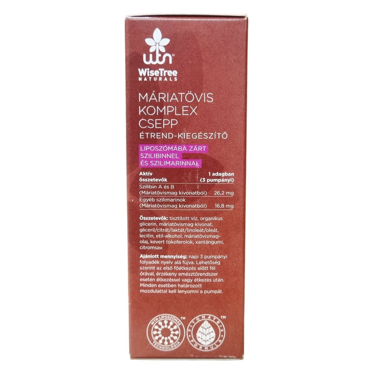 A máriatövis komplex csepp liposzómába zárt szilibint és szilimarinokat tartalmaz, melyek természetes módon fordulnak elő a máriatövismag kivonatban. A folyékony étrend-kiegészítő formulája 50 ml-es kiszerelésű, amely mintegy 60 adag elfogyasztására elegendő. A termék szintén tartalmaz organikus glicerin, lecitin, etil-alkohol és más kísérő összetevőket, amelyek a hatóanyagok stabil és biohasznosuló formában való előállítását segítik. A készítmény fejlesztése és gyártása Magyarországon történik, lipid- és növényi mátrix-technológiával támogatva, mely a hatóanyagok hatékony felszívódását célozza. A termék nem tartalmaz tartósítószert, így természetes és tiszta választás lehet az étrend kiegészítéséhez.