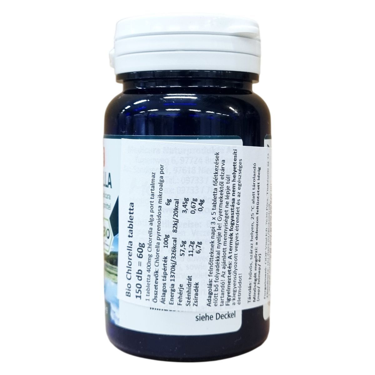 A BIO CHLORELLA tabletta 150 darabos kiszerelésben, összesen 60 g tömegben kerül forgalomba. A termék biogazdálkodásból származó Chlorella Vulgaris mikroalga port tartalmaz, mely 400 mg hatóanyagot biztosít tablettánként. Az energia- és tápérték adatok alapján a termék magas fehérjetartalmú, alacsony zsír- és szénhidráttartalmú. A tablettákat bő folyadékkal, főétkezések előtt célszerű bevenni. Gyermekek elől elzárva kell tartani és az ajánlott napi adag nem léphető túl. A termék tárolására hűvös, száraz, maximum 25 fokos környezet javasolt. Forgalmazója az ODP Vital Kft., a termék rendelkezik a DE-ÖKO-012 és a HU-ÖKO-01/Biokontroll tanúsítványokkal, amelyek igazolják bio minőségét. A termék fogyasztása nem helyettesíti a változatos étrendet és az egészséges életmódot.