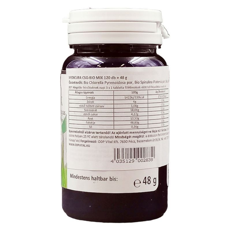 Spirulina, chlorella és zöldárpa gyógynövényeket tartalmazó komplex bio készítmény.