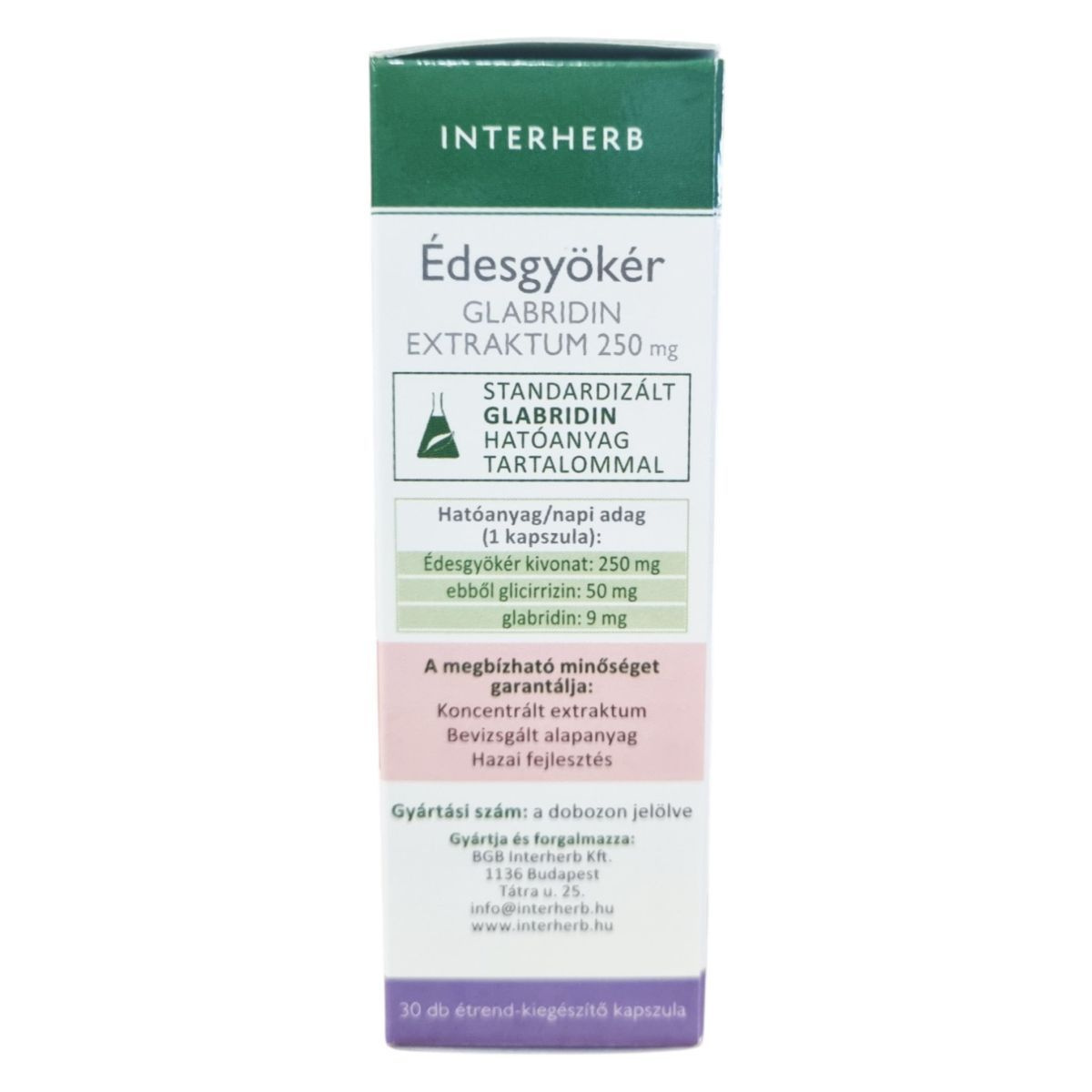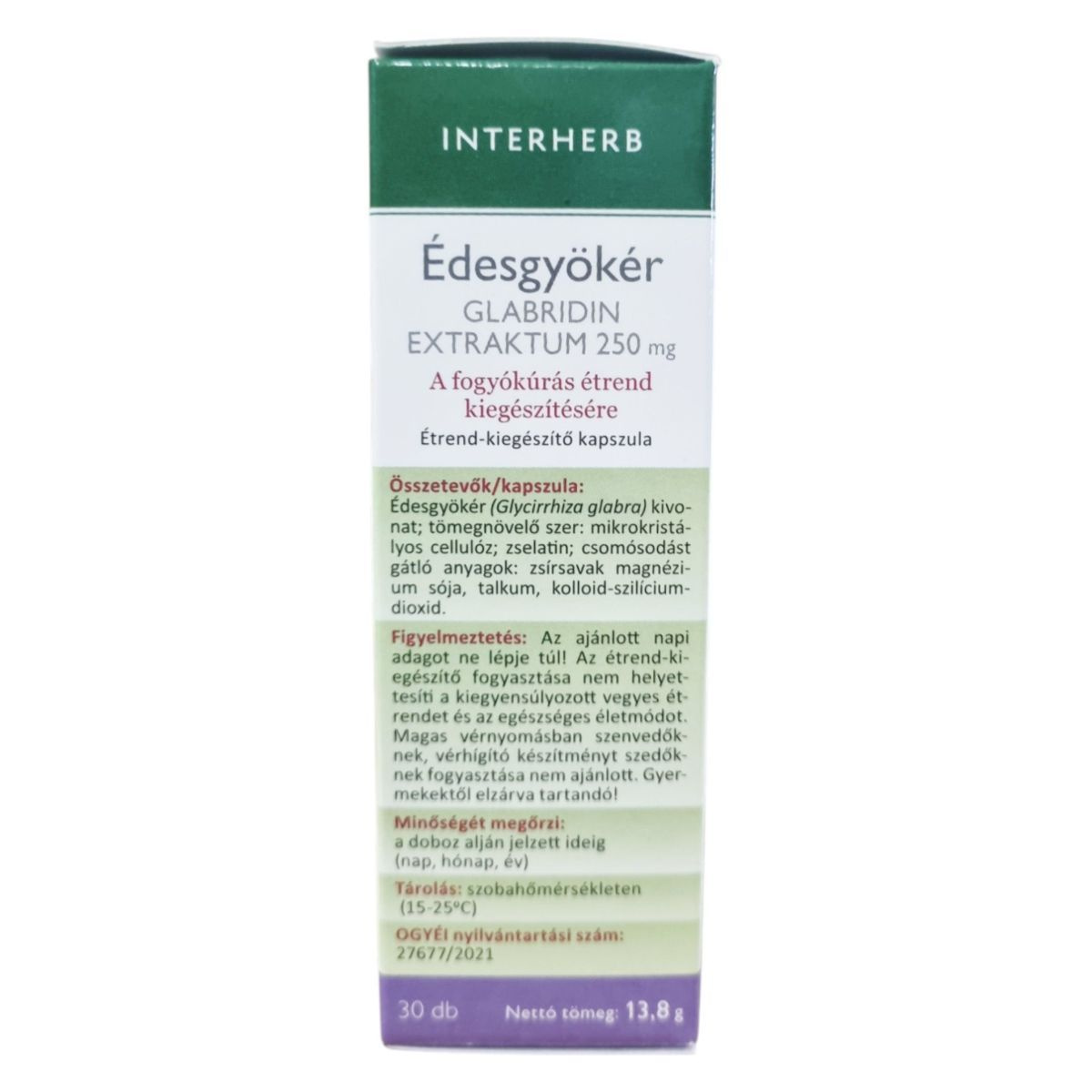 Az INTERHERB Édesgyökér Glabridin Extraktum 250 mg kapszula fogyókúrás étrend kiegészítésére szolgálhat. Az édesgyökér kivonat hozzájárulhat a gyomor és nyombél nyálkahártya épségének megőrzéséhez és a zsírok anyagcseréjének támogatásához.